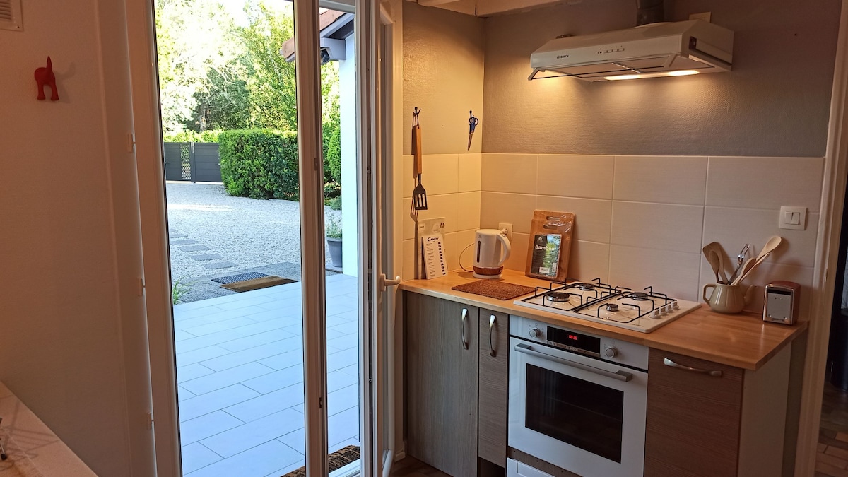 Logement de 30 m² attenant à notre maison avec entrée indépendante et terrasse privative, situé dans un secteur résidentiel et calme de Saint Médard en Jalles. Idéal seul ou en famille pour un déplacement professionnel (à 15 min de l'Aéroport et des grandes entreprises Ariane Group, Thalès...) ou en vacances: à 30 min du centre de Bordeaux, 35 min de l'océan et des lacs, sur la route des vins du Médoc. Aussi, merci de réserver avec le nombre réel de personne séjournant dans le logement.