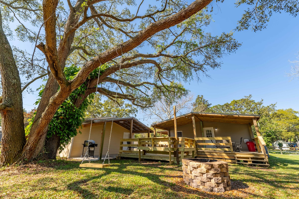 Ce logement unique est proche de tous les sites et commodités, ce qui facilite la planification de votre visite du centre-ville historique ou des kilomètres de plages de sable. Situé à St. Aug. Sud avec accès au bord de l'eau à l'ICW et au parc riverain. Clôturé 3/2 peut accueillir 12 personnes, avec l'utilisation de la véranda EXTÉRIEURE et du matelas pneumatique, sinon 2 lits King Size et une chambre avec lits superposés sont disponibles à l'intérieur. Beaucoup d'espace pour garer le camping-car et ajouter des lits supplémentaires (pas de branchements). Apportez votre propre bateau, jet ski, kayak, paddleboard, vélos et voiturette de golf pour explorer ce paradis de Floride.
