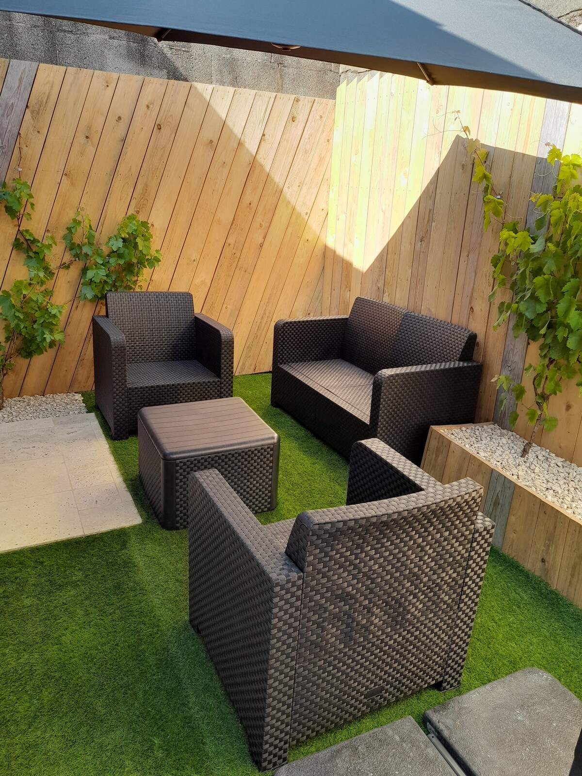 Respect du protocole de nettoyage renforcé établi par Air BnB Gîte de 130 m2 aménagé dans une ancienne grange réparti sur 2 niveaux. RdC : pièce de vie avec coin cuisine et coin salon. WC séparé. 1 chambre avec salle d 'eau privative (+ machine à laver). Etage : 1 chambre avec salle d'eau privative + couchage pour 2 enfants. WC séparé. Extérieur : cour anglaise de 93 m2 avec salon de jardin + barbecue + parasol + bains de soleil. Espace vert non cloturé accessible côté gîte et côté maison.