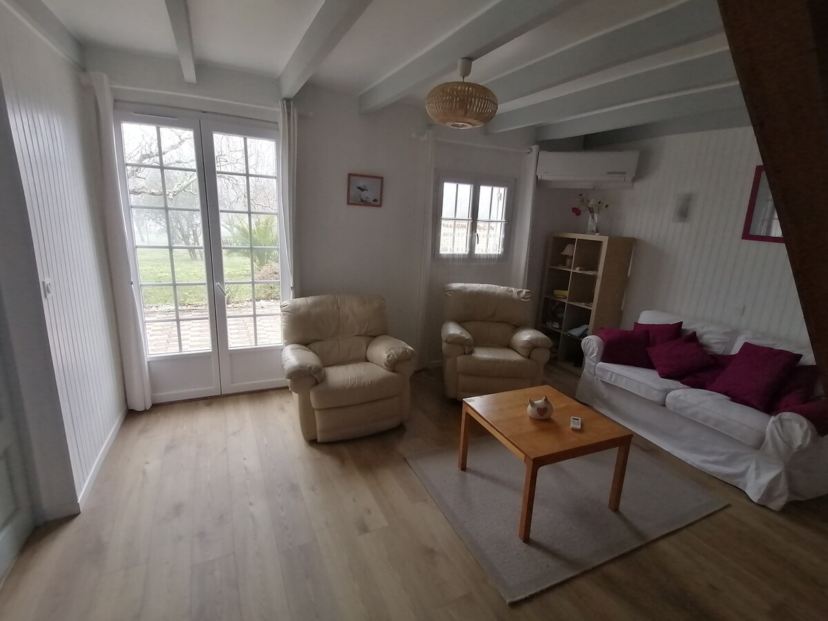 Située entre Jonzac ville Thermale (15 kms), et Montendre (7 kms), cette maison vous offre un logement composé de deux chambres et une pièce de vie (salon/cuisine entièrement équipée). Un coin repas vous attend à l'ombre du tilleul. Vous êtes idéalement situés entre Cognac, Saintes, Royan et Bordeaux. Vous pouvez vous dépayser dans nos campagnes situées entre terre et mer, et découvrir notre patrimoine en longeant notre fleuve Charente.