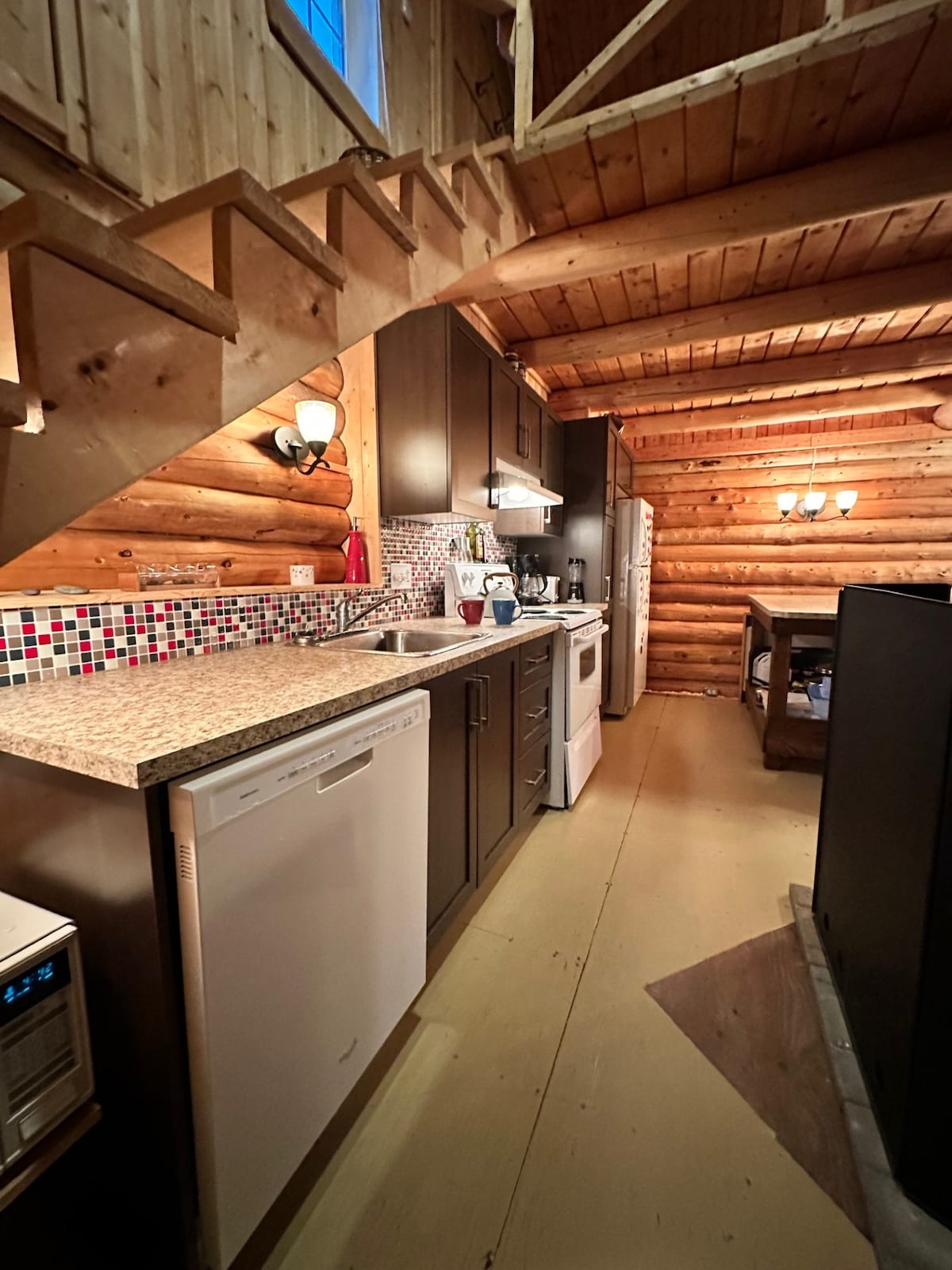 Magnifique loft près du centre‑ville. Idéalement situé et équipé pour des séjours de courts ou longs. Profitez d’un accès au jacuzzi ouvert à l’année, d’un garage, de stationnements extérieurs et d’une terrasse avec foyer. Entrée privée avec serrure à code. Comprend une cuisine complète, Wi‑Fi, TV de 52" avec apps de streaming et une console PS4. Borne 30A via adaptateur NEMA 14‑50P (vous devez apporter votre adaptateur d'auto). Notez : accès uniquement par escaliers. Aucune rampe d’accès.
