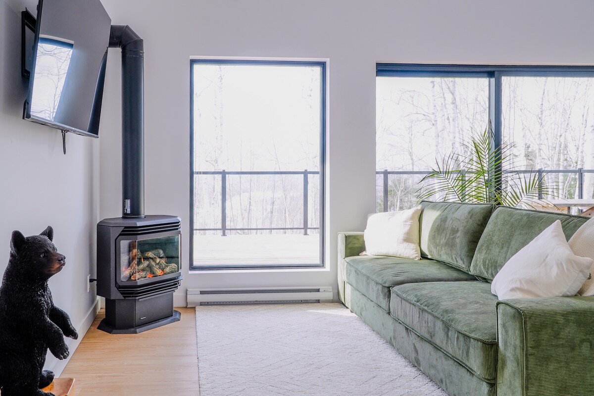 Envie d’une escapade en pleine nature? Ce chalet à flanc de montagne de style scandinave saura vous charmer. Avec son terrain de plus de 1 million pieds carrés, vous pourrez profiter d’un lac, d’une rivière, de sentiers pédestres, tapis de yoga et bien plus! Vous séjournerez dans un endroit où la détente et la nature sont au rendez-vous. Bien équipé, le chalet n’attend que vous! Conçu pour 2 personnes mais pouvant accueillir jusqu’à 3 personnes avec le canapé-lit (simple).