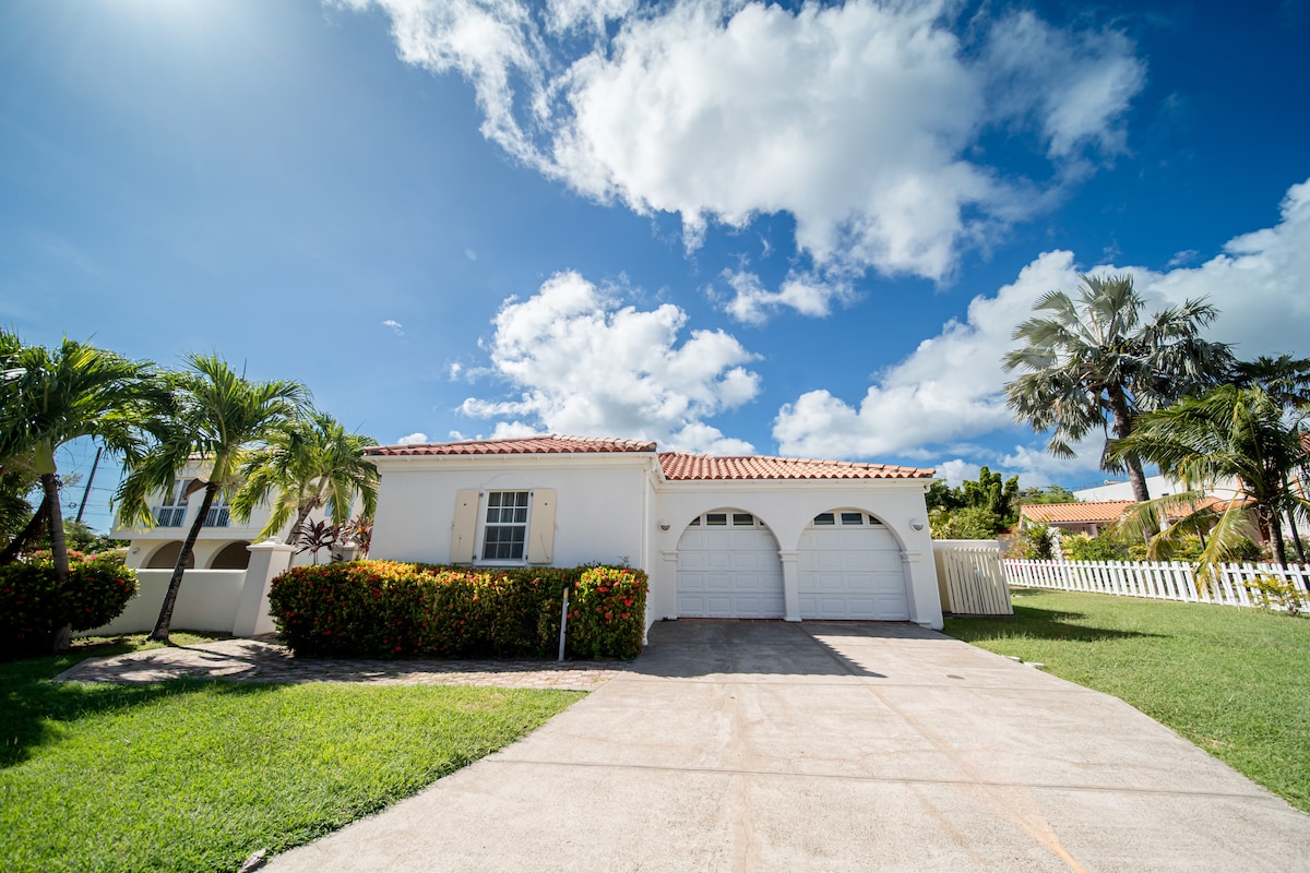 Forget your worries in this spacious and serene space! A picturesque, calm quiet beach is a one minute walk from your door! This comfortable two-bedroom suite is loaded with features to help you enjoy your stay in paradise. - 3 AC units - TV in each room - private bathrooms with walk-in showers - well equipped kitchen with Ninja Blender - fast Wifi - hot water - desk and office chair in each bedroom - beach chairs Walking distance to many resturants, bars and grocery stores.