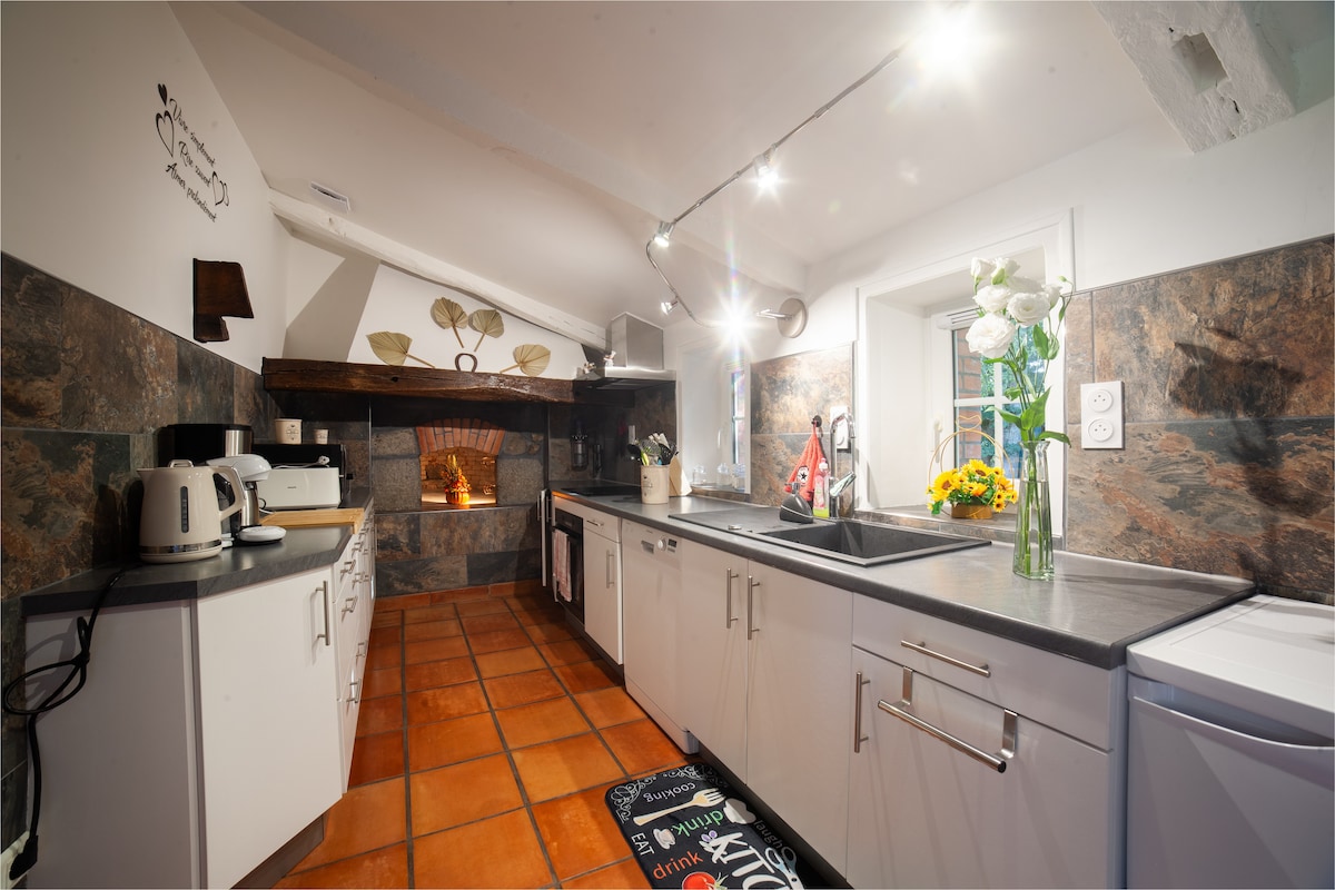 Respect du protocole de nettoyage renforcé établi par Air BnB Gîte de 130 m2 aménagé dans une ancienne grange réparti sur 2 niveaux. RdC : pièce de vie avec coin cuisine et coin salon. WC séparé. 1 chambre avec salle d 'eau privative (+ machine à laver). Etage : 1 chambre avec salle d'eau privative + couchage pour 2 enfants. WC séparé. Extérieur : cour anglaise de 93 m2 avec salon de jardin + barbecue + parasol + bains de soleil. Espace vert non cloturé accessible côté gîte et côté maison.