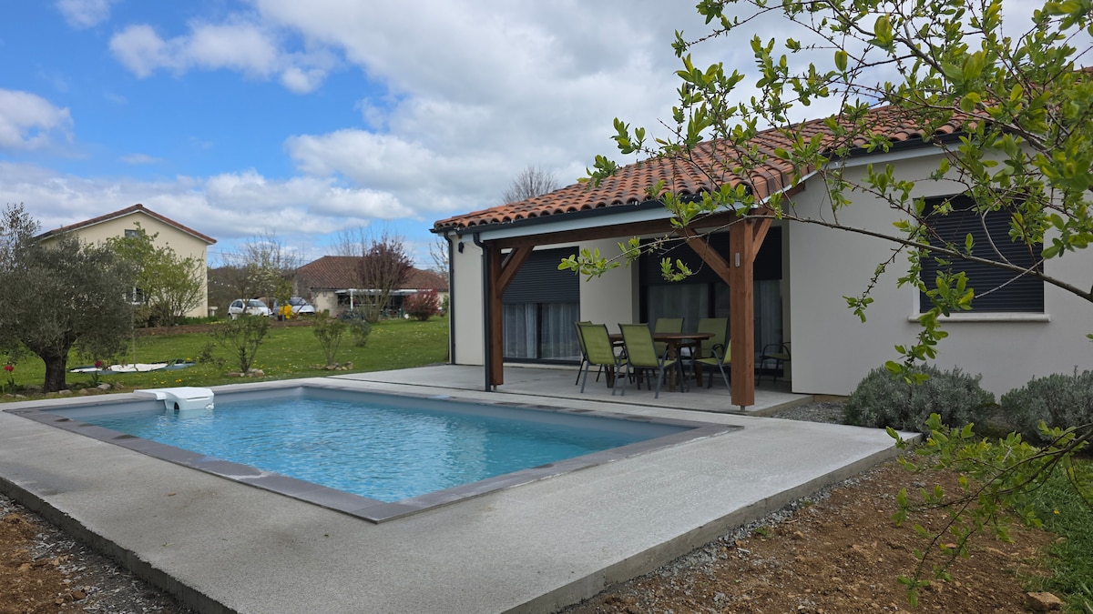 Maison, cadre apaisant,jacuzzi et piscine