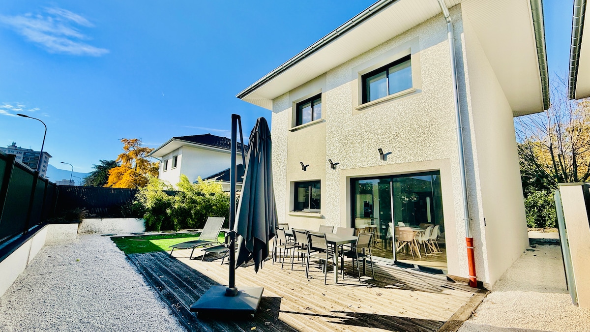 🏡 Maison contemporaine 4 pièces: 📍 À moins de 5 min de Chambéry 🛣️accès rapide autoroute A43 (moins de 500 m) 🚗 3 places de parking privatif devant la maison ✨ Draps et serviettes fournis 🌐 WIFI fibre gratuit / 📺 Grand écran LED ❄️ Climatisation 🍽️ Salon/cuisine ouverte équipée 🛌 3 chambres (3 grands lits 160 cm) 🚿 2 salles d'eau ☀️ Terrasse avec mobilier 🅿️ Parking sécurisé cameras 🐾 Seuls les animaux de moins de 10 kg sont acceptés.