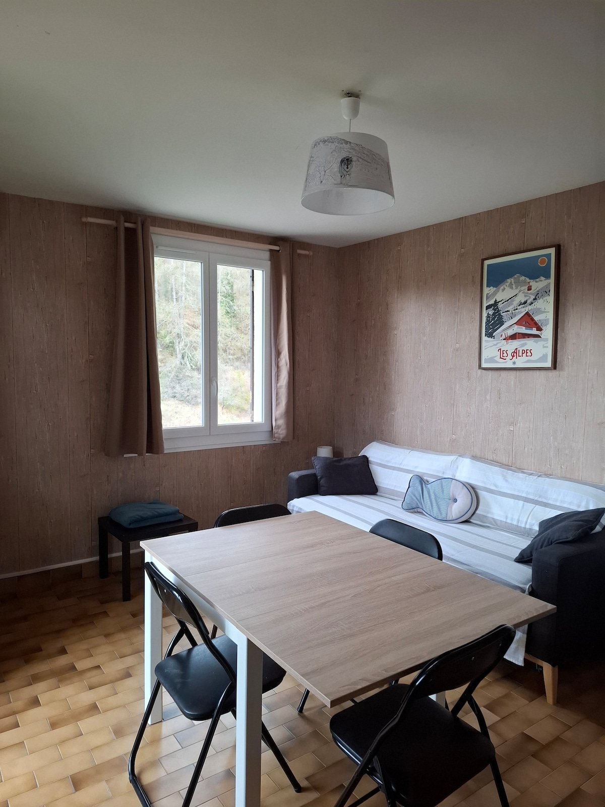 Appartement T2 de 42m² situé tout proche d'une remonté mécanique menant au centre de la petite station familiale de Saint Léger Les Mélèzes (Champsaur) 5 min a pieds proches toutes commodités, se compose d'un salon/sam, couchage double 140x190 lit gigogne, une chambre lit double 140x190 et en superposé un couchage simple 90x190, une sdb avec WC et douche, une kitchenette tout équipée, situé au 1er et dernier étage d'une bâtisse au cœur de la nature.