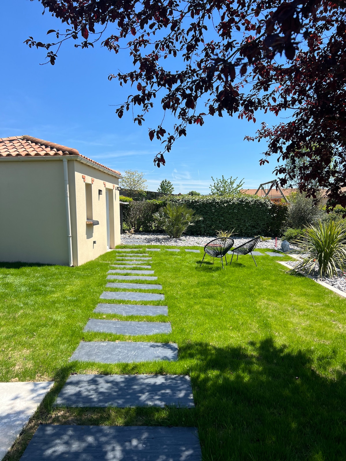Charmant studio tout confort dans un endroit très calme . L'entrée est totalement indépendante ( par la terrasse de notre maison ) et autonome avec une boite à clés. Convient pour une famille. Tout proche du Puy du fou, de la vallée de Poupet et à 1h de la côte. En accès libre : table de jardin, barbecue, bain de soleil. Commerces très proches, place de parking devant le studio En supplément : ( non obligatoire ) - draps : 8 euros par lit - serviettes : 4 euros par personne