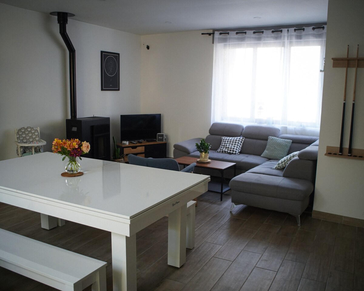 Une extension conçue par un architecte a permis d'agrandir la bâtisse initiale et d'y rajouter une cuisine/salle à manger moderne, donnant de plein pied sur une terrasse avec tout ce qu'il faut pour en profiter. 2 chambres et une salle de bain indépendante vous attendent au premier étage. Une grande chambre sous mansardes est proposée au deuxième étage. La maison est parfaitement aménagée et équipée pour recevoir 6 personnes et éventuellement des enfants en bas age.