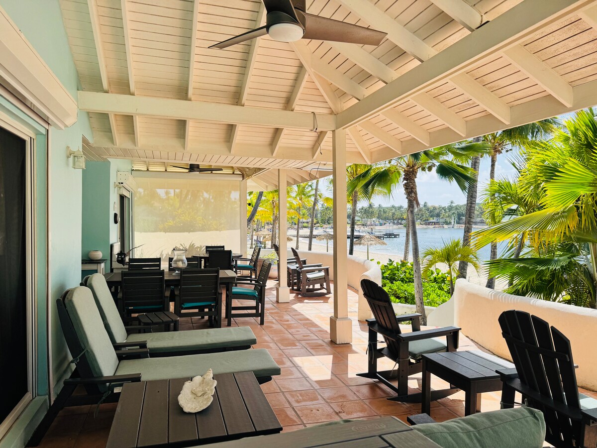 Villa Coquille offers all luxuries of St. James's Club, spectacular views of Mamora Bay from sunrise to sunset and very private and intimate feel. If you are looking to be in a very secure environment with all comforts that a holiday resort offers, but want to be in a secluded, intimate and very private beachfront location at the same time, you found your place. The spacious living area, opening to the sea views, has an open plan kitchen great for entertainment.