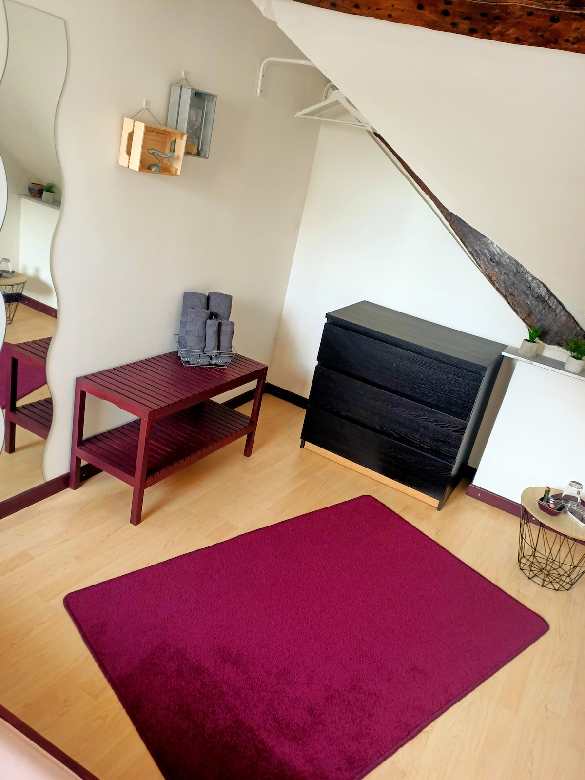 Ce logement paisible offre un séjour détente pour toute la famille ou pour vos voyages d’affaires. 2 chambres doubles avec lit de 160cm. Un canapé lit supplémentaire dans le salon. A disposition baby-foot Wifi. Lave linge,table et fer à repasser à disposition