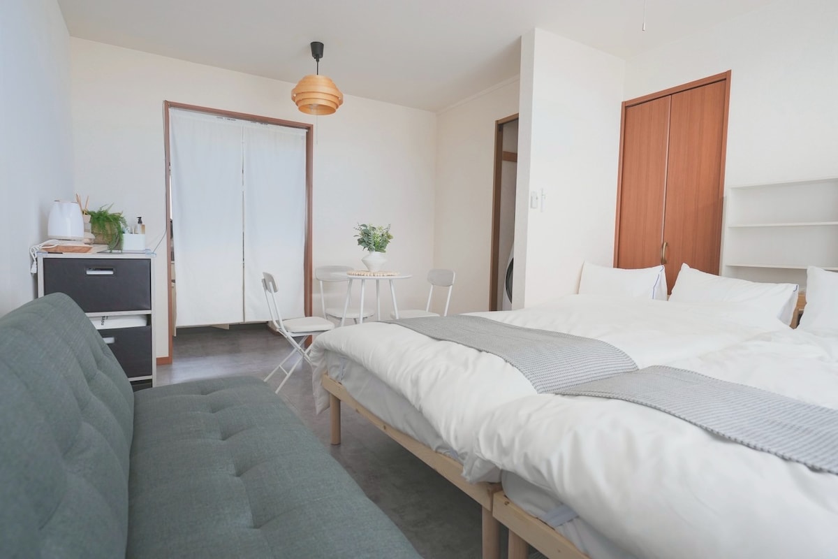 Cette chambre offre un espace confortable et relaxant. L'entrée, la salle de bain, la chambre, etc. sont réservées à l'usage exclusif des voyageurs. Depuis le spacieux couloir juste à l'intérieur, vous pouvez voir le coin cuisine pratique.Il a un design simple et élégant, et est bien équipé avec les installations nécessaires. Cette chambre convient aux voyages d'affaires et aux visites touristiques.Il est bien équipé.Faites des souvenirs dans ce logement familial.