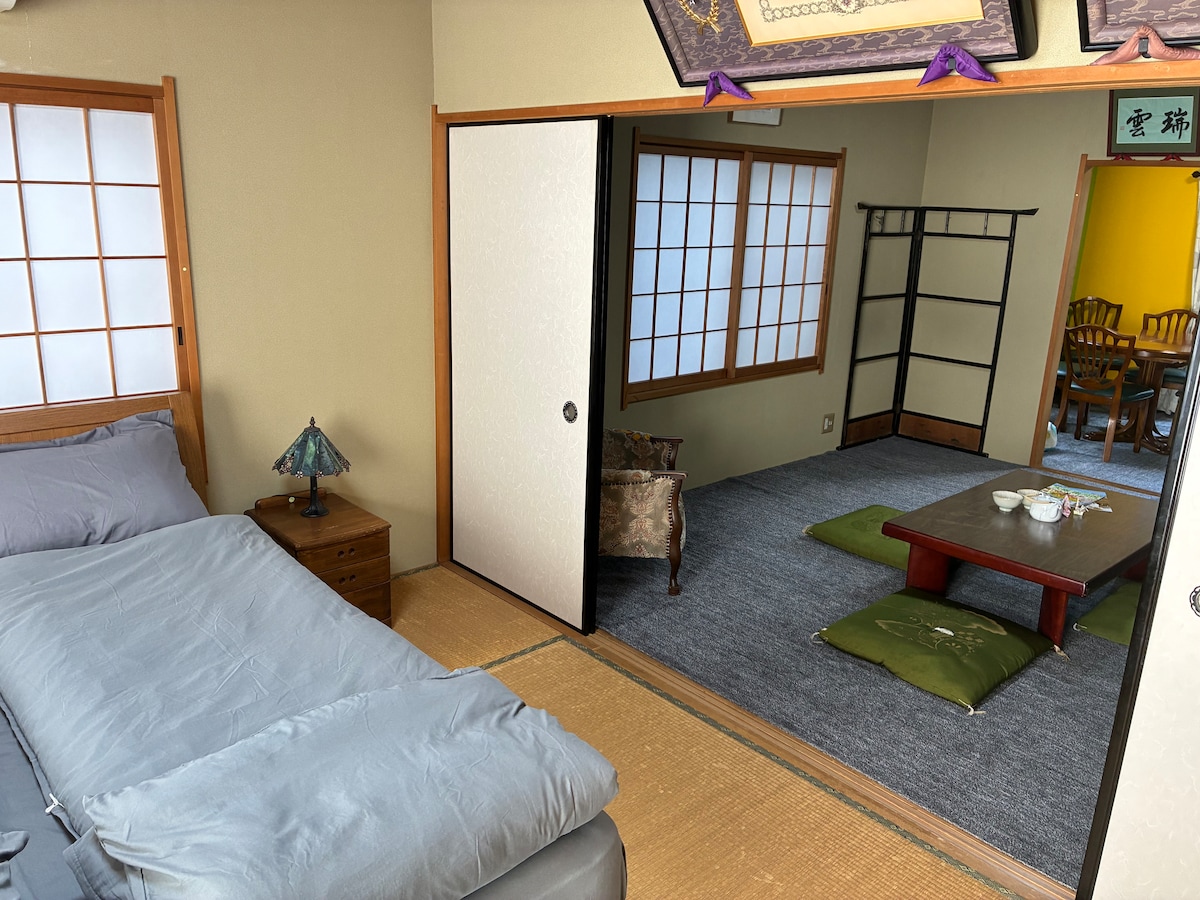 Situé dans un quartier calme d'Osaka, ce logement privé offre une escapade relaxante loin des zones touristiques très fréquentées. Profitez d'une expérience japonaise traditionnelle avec des tatamis et des futons, qui créent une ambiance chaleureuse et authentique. Parfait pour les familles et les groupes qui souhaitent séjourner ensemble confortablement tout en découvrant la vie locale d'Osaka. Situé à deux pas du parc Nagai, idéal pour les promenades matinales et la nature. Accès facile à Namba, Shinsaibashi et Tennoji, et correspondances directes avec l'aéroport du Kansai.