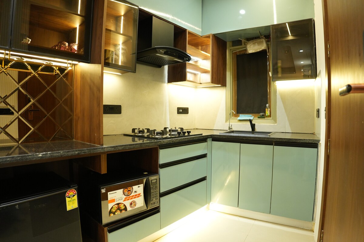 ➽ Spacieux appartement 1BHK avec patio attenant, entièrement climatisé. Toutes les chambres disposent d'une climatisation de 1,5 tonne. ➽ Propriété ensoleillée dans un quartier à revenus élevé, ouvert sur trois côtés, orienté parc et bien ventilé avec beaucoup de lumière naturelle et d'air frais. Projecteur ➽ haut de gamme avec barre de son 25W et Amazon FireStick avec applications OTT. ➽ Cuisine entièrement équipée avec des équipements de base pour une cuisine pratique. ➽ Détendez-vous sur la superbe terrasse privée avec éclairage d'ambiance et système Foger unique pour rafraîchir le patio.