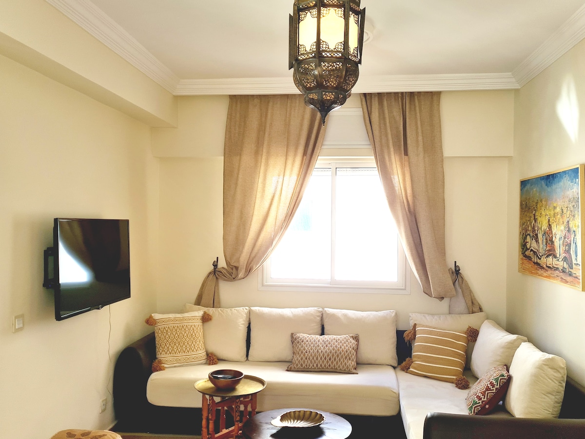 Experience luxury in the heart of Rabat, Morocco's capital city! This refined space features cozy nooks, a comfortable bed, a fully-equipped kitchen, and free WiFi. It has everything you need for a soothing stay. This modern apartment is located in the chic upper side of Agdal, close to the Sofitel Hotel, Descartes School, and Ibn Sina Forest. Conveniently located, the flat is few steps away from the main street, full of shops, cafes and restaurants. It's only 10 minute-drive from the Medina.