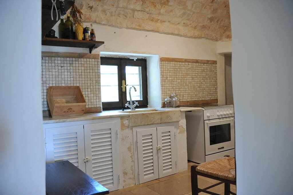 Trullo à 3 cônes de 1668 entièrement rénové avec des matériaux écologiques (chaux et chanvre). À quelques kilomètres des belles plages de Monopoli, Alberobello, Castellana Grotte et Polignano a Mare, dans une zone qui dispose d'un mini-marché, d'une boucherie, d'une ferme avec d'excellents produits laitiers et d'un arrêt de bus (pour Monopoli et Castellana). Il dispose d'une chambre double et d'une chambre avec canapé-lit deux places (lits séparés).