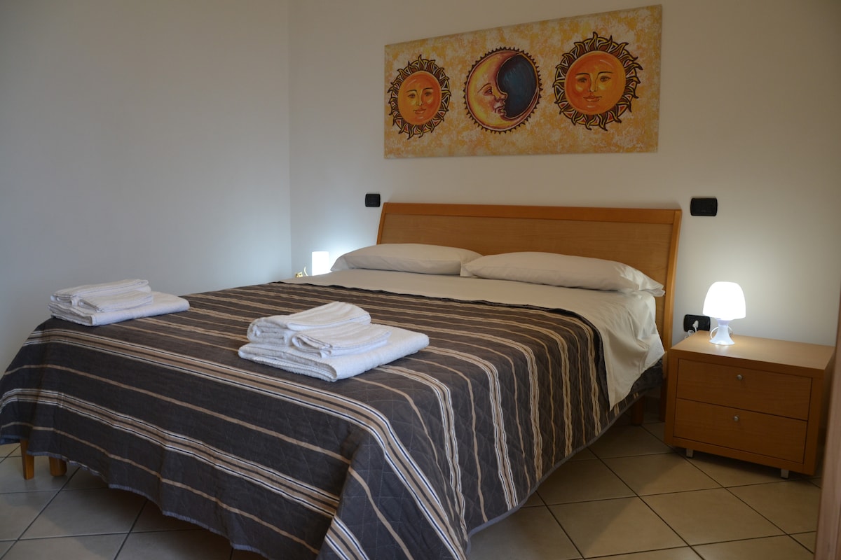 Accogliente appartamento con vista esclusiva sulla città ed un respiro intenso sul mare, a brevissima distanza dal centro storico. E' composto da un ampio salone con comodo divano letto, zona pranzo con balcone e terrazza con vista mare, arredato con stile classico semplice e delicato; camera matrimoniale con bagno privato con doccia ampia; cucina attrezzata e bagno con lavatrice. Ubicato al quarto piano senza ascensore raggiungibile attraverso comode scale.