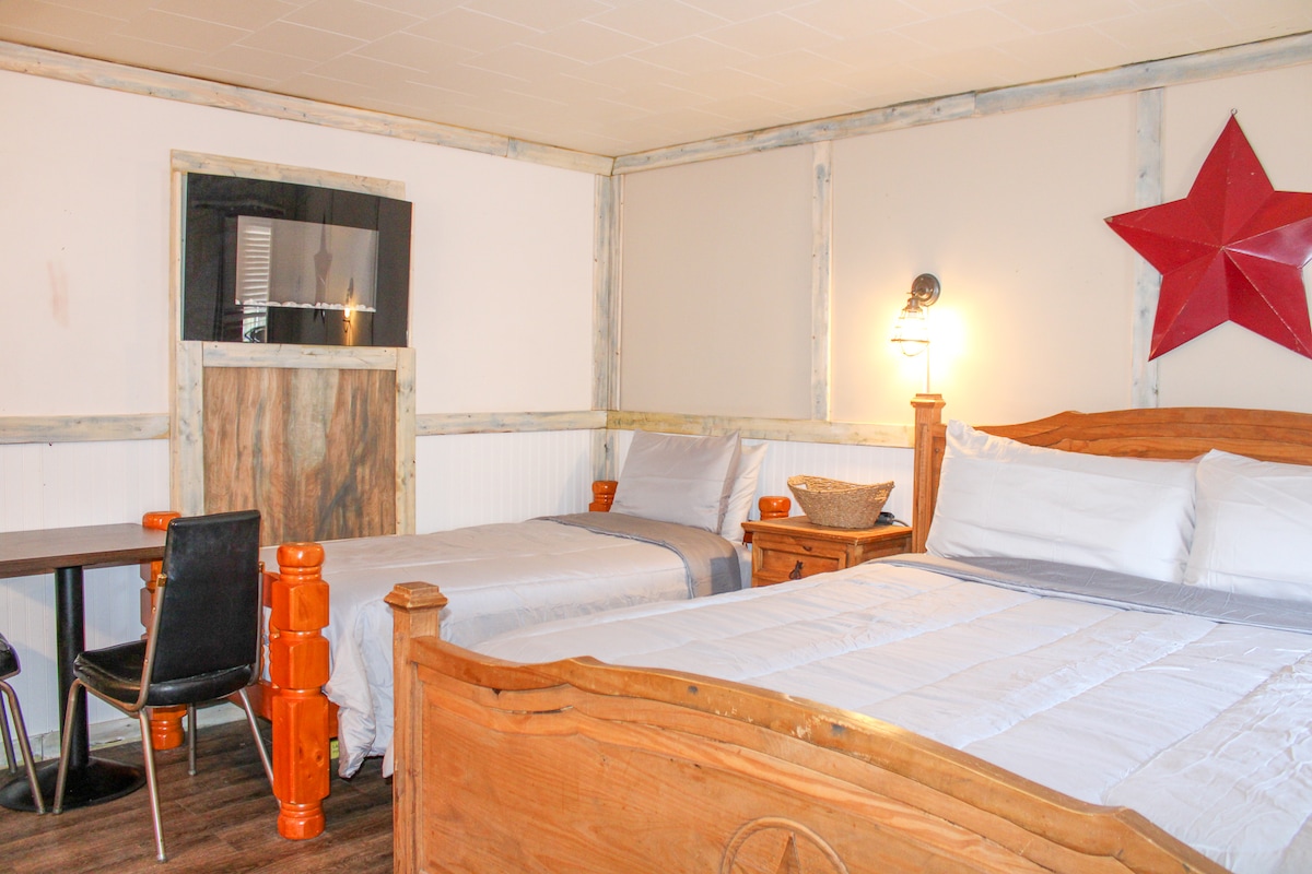 Our FAMILY ROOMS are unique and colorful! The single queen bed & full-over-full bunk bed are perfectly tucked – leaving plenty of room for the whole gang! Keurig style coffee makers, HD TV's, and retro mini fridges. Guests will find the bathrooms arranged in subway tiles with spacious showers. Far from your cookie-cutter corporate chain, the AMERICAN CLASSIC INN is reshaping the guest experience. Our renovated motel is a charm waiting to be discovered. Simplistic never boring. *NO cleaning fee!*