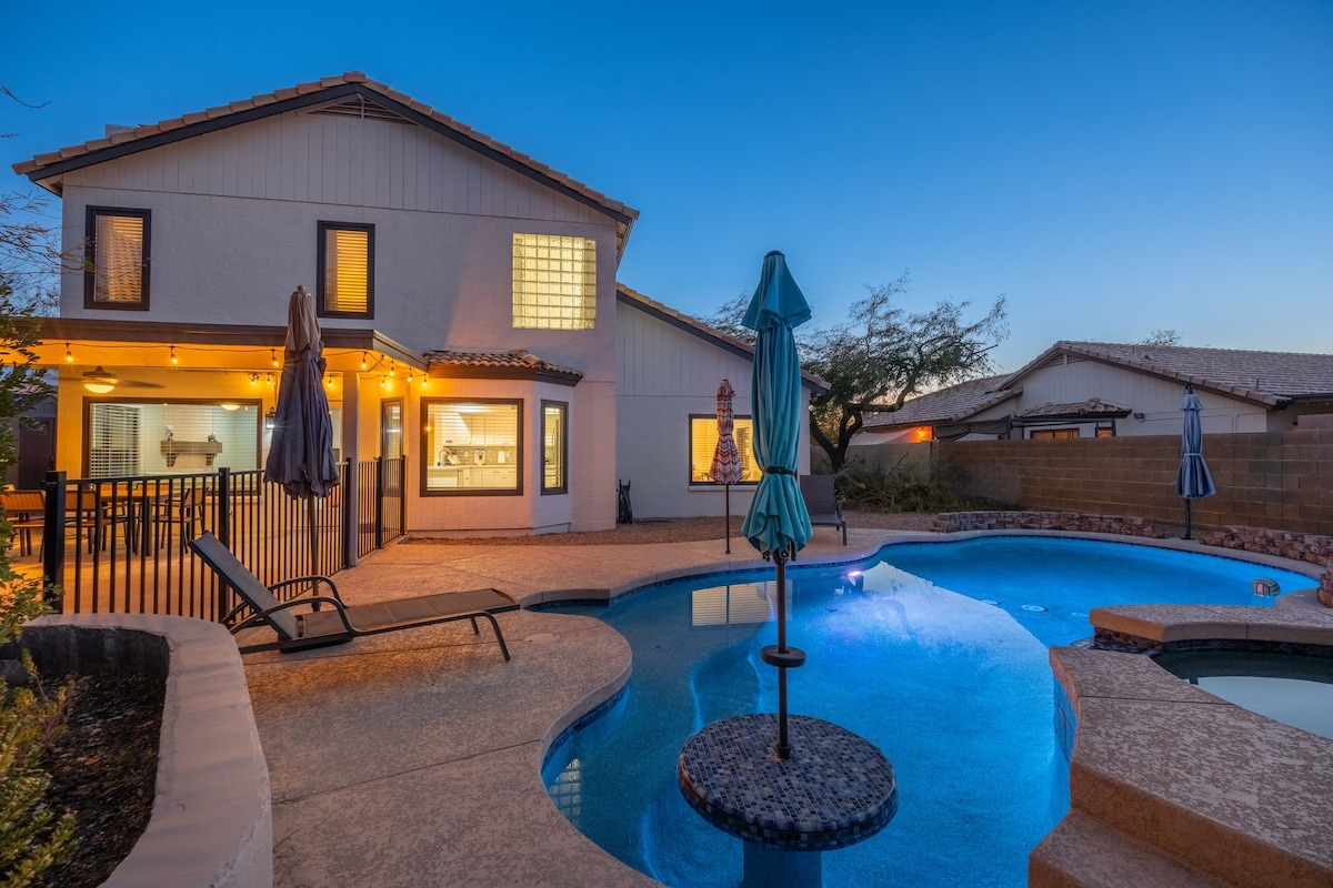 Détendez-vous dans cette maison de vacances tranquille et conçue par des professionnels. À quelques minutes des principales autoroutes, des sentiers de randonnée dans les montagnes Superstitions et de la descente en bouée de la rivière Salt ! La cour arrière privée offre une expérience de baignade fantastique. Avec une allée privée et un garage, profitez d'un grand parking gratuit dans un quartier calme. * La piscine utilise une pompe à vide qui ne doit en aucun cas être retirée pendant votre séjour.