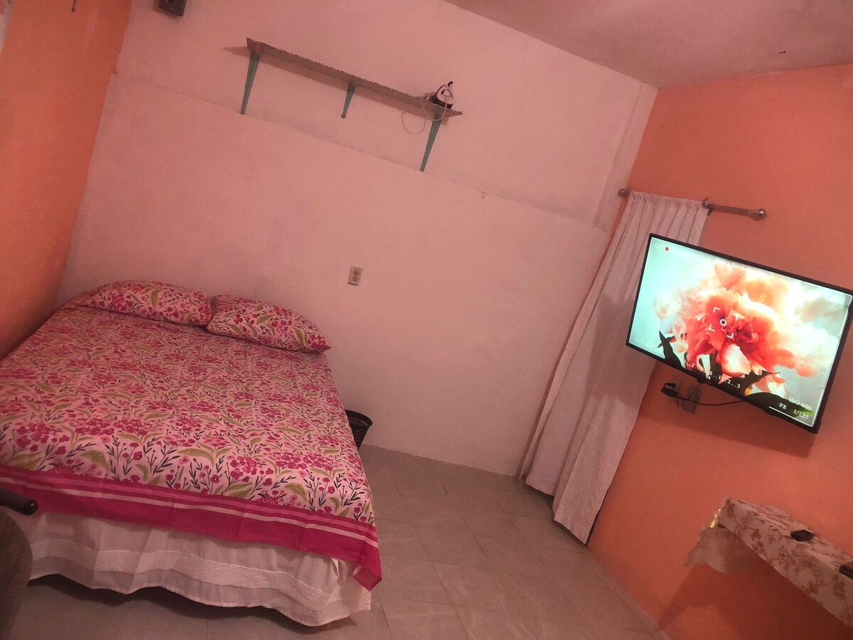 Profitez d’un séjour au calme dans cet appartement confortable entouré de verdure, idéal pour se reposer après avoir exploré Palenque. L’espace dispose de plafonds en bois, de grandes baies vitrées et d’une atmosphère relaxante. La chambre dispose d’un lit confortable, de la climatisation et d’un bon éclairage naturel. En outre, l’appartement dispose d’un salon et d’une télévision, et se trouve dans un quartier calme et à proximité des principales attractions touristiques de la ville.