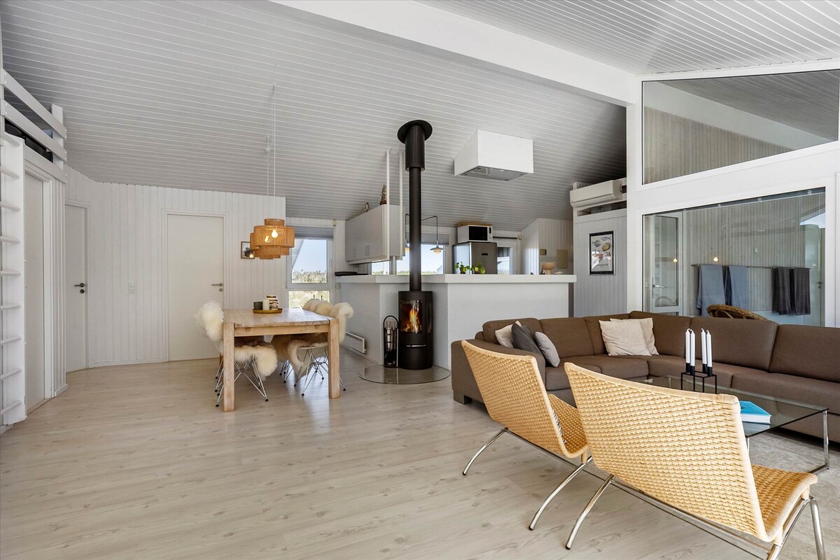 Emplacement idéal près de la plage, de la nature protégée, de la forêt et de la ville de Løkken. Le terrain est un terrain naturel de 2580 m2, où l'accent est mis sur la biodiversité avec des plantations uniques, ce qui permet l'intimité et les invitations à des séjours dans différentes zones. Il y a des terrasses en bois au sud et à l'est – il y a également une terrasse couverte. C'est une maison moderne et élégante toute l'année pour les personnes soucieuses de l'environnement, car il y a un chauffage géothermique et une isolation supplémentaire, ce qui réduit considérablement la consommation d'électricité et rend la maison extrêmement respectueuse du CO2. Il y a un chauffage par le sol partout.
