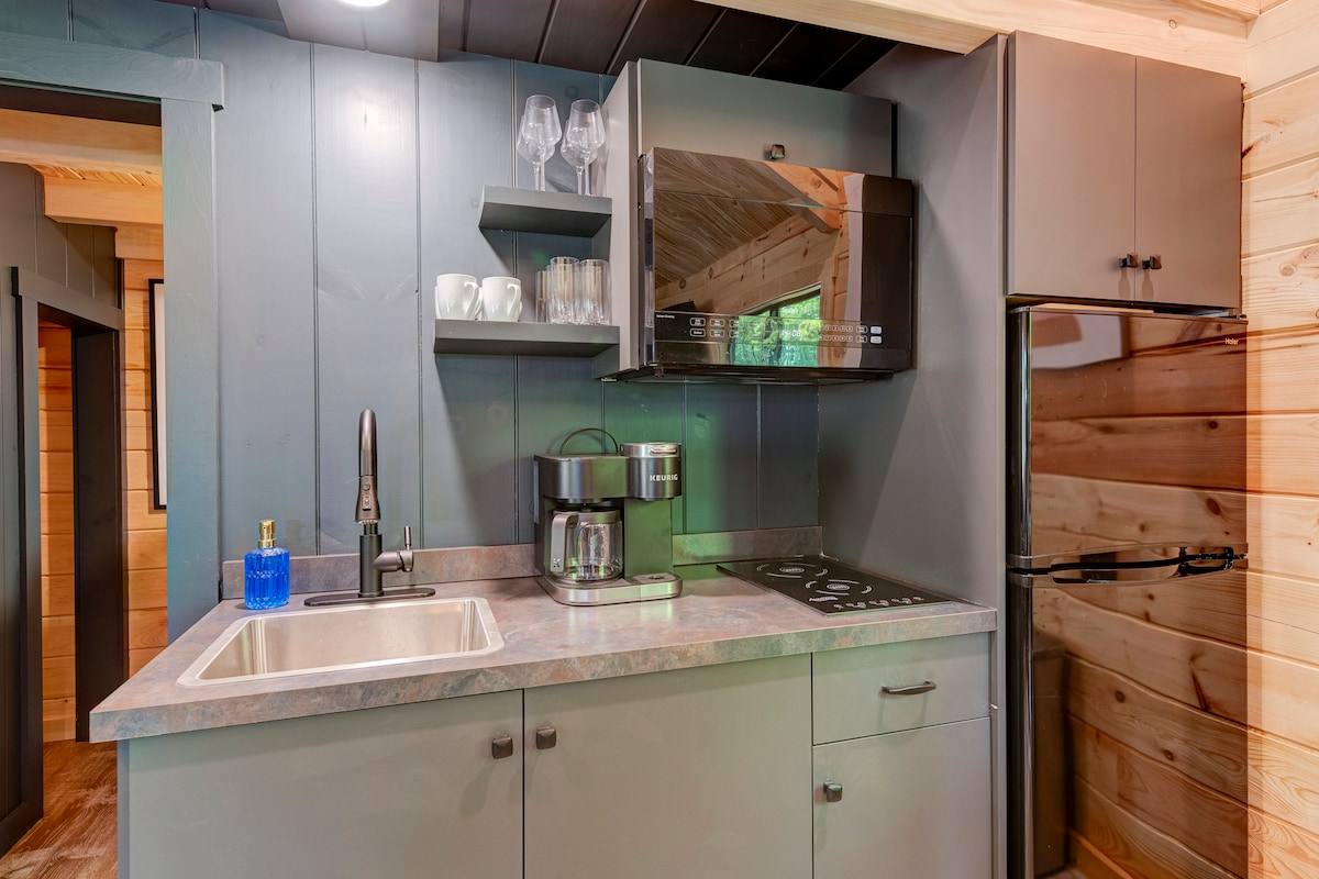 BNB Breeze Presents : The Green Creek Shipyard ! Fabriqué et construit par trois frères et sœurs, des efforts immenses et une délibération minutieuse ont été investis dans la mise en place de cette maison exceptionnelle de conteneurs maritimes ! Ce séjour unique et amusant comprend : • Bain à remous • D'un sauna à barils ; • Étang privé avec sièges ; • Foyer confortable avec lumières à cordes (bois de chauffage fourni) • un barbecue extérieur, • Terrasse de 26pieds avec chaises longues et chaises pour œufs • Jeux de jardin : y compris Corn Hole + Ring Toss • Bar à café : machine à expresso automatique Jura