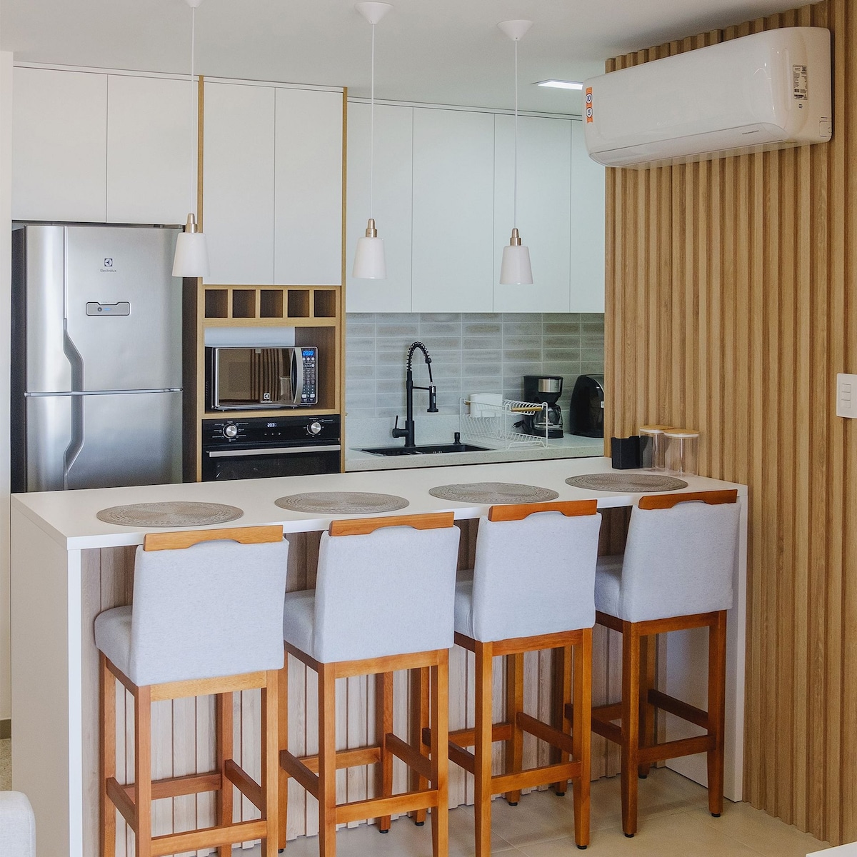 Profitez de cet endroit unique et calme pour vous détendre. Appartement avec un environnement intérieur élégant et pratique. Le logement est climatisé(climatisation partagée), offrant un plus grand confort à votre hosepdagem. La cuisine dispose d'une table de cuisson, d'un réfrigérateur, d'un four à micro-ondes, de casseroles, d'un mixeur, d'une cafetière et d'autres ustensiles de cuisine pour faciliter la préparation de vos repas. Nous avons une douche électrique, une télévision connectée avec des chaînes ouvertes et fermées et Wi-Fi. En plus d'un balcon avec une vue fantastique sur la piscine.