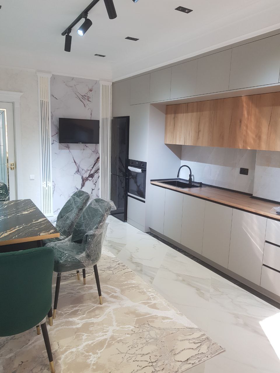 Un appartement de 62 mètres carrés situé dans le complexe Smart City. C'est un appartement neuf et élégant, au rez-de-chaussée dans un espace paisible et reposant. Assez d'espace pour se garer. Marché, magasin médical et hôpital sont à 5 minutes à pied . Toutes les pièces sont équipées d'une télévision, d'une CONNEXION WI-FI. L'appartement dispose d'une douche avec de la machine à laver. Il y a une grande salle à manger avec regregirator, une petite machine à café et du gaz. Il y a aussi une chambre et un hall. Le canapé dans le hall est réglable afin qu'une ou 2 personnes de plus puissent y passer des nuits.