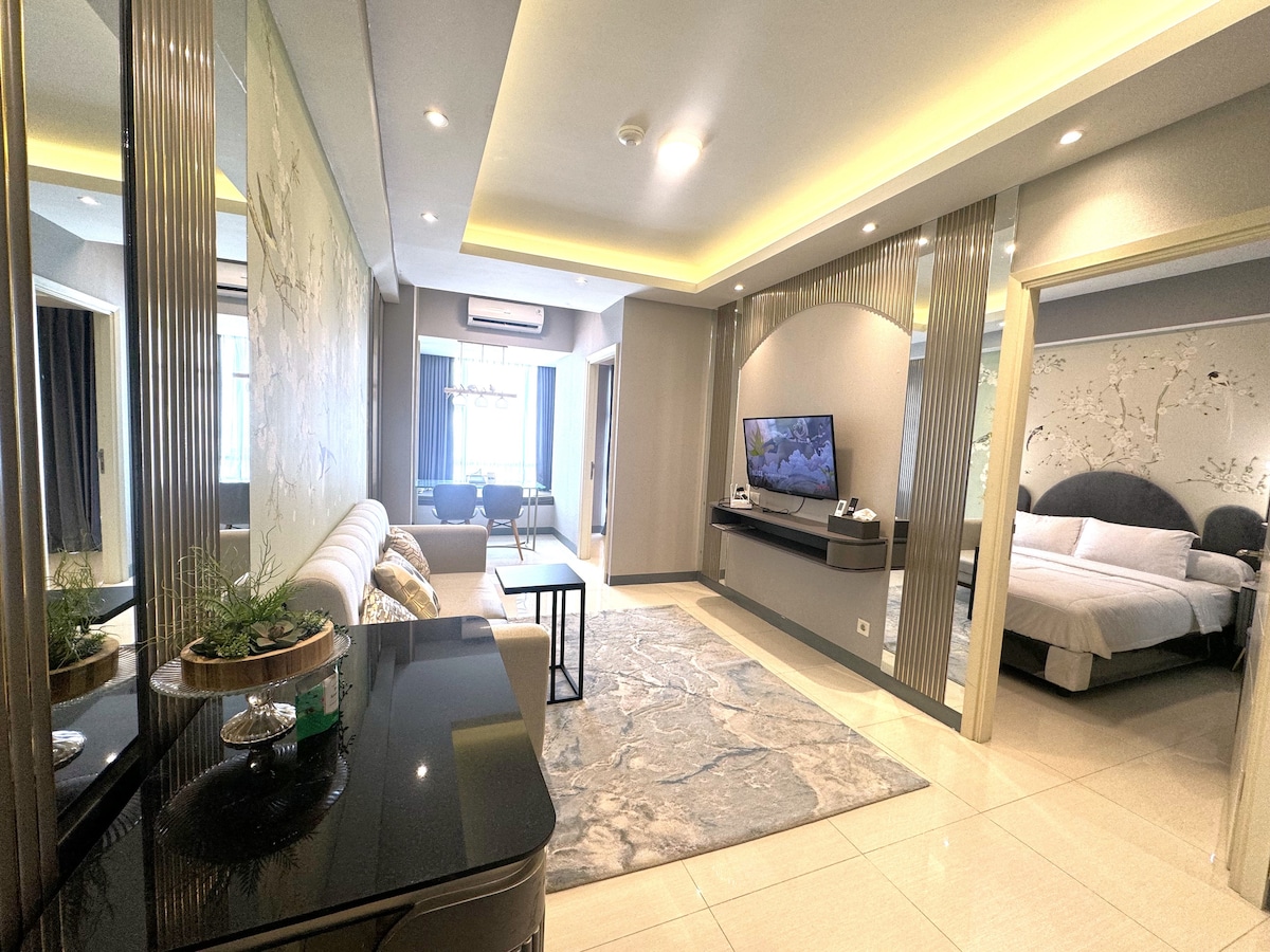 Appartement élégant et luxueux de deux chambres à Anderson Tower au sommet du centre commercial Pakuwon. Profitez d'un logement élégant et central à West Surabaya, avec ses nombreuses commodités. La piscine à débordement ainsi que la zone de jeux aquatiques, le centre de remise en forme, le jardin thématique et l'accès direct au centre commercial Pakuwon pour le shopping et le divertissement, sont réunis pour vous accompagner vers une vie plus raffinée.