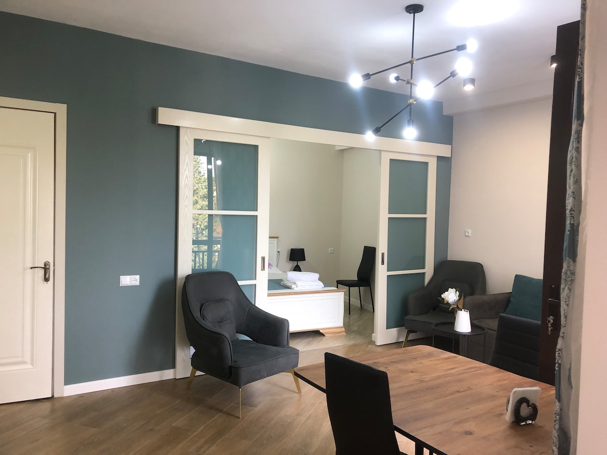 Appartement neuf dans un immeuble de deux étages, isolé et avec une entrée indépendante, situé dans le centre historique de la ville. Un hébergement récemment rénové est à la disposition des voyageurs. Les principales attractions, restaurants, cafés et boutiques de la ville sont accessibles à pied. Les propriétaires parlent anglais, russe et géorgien.