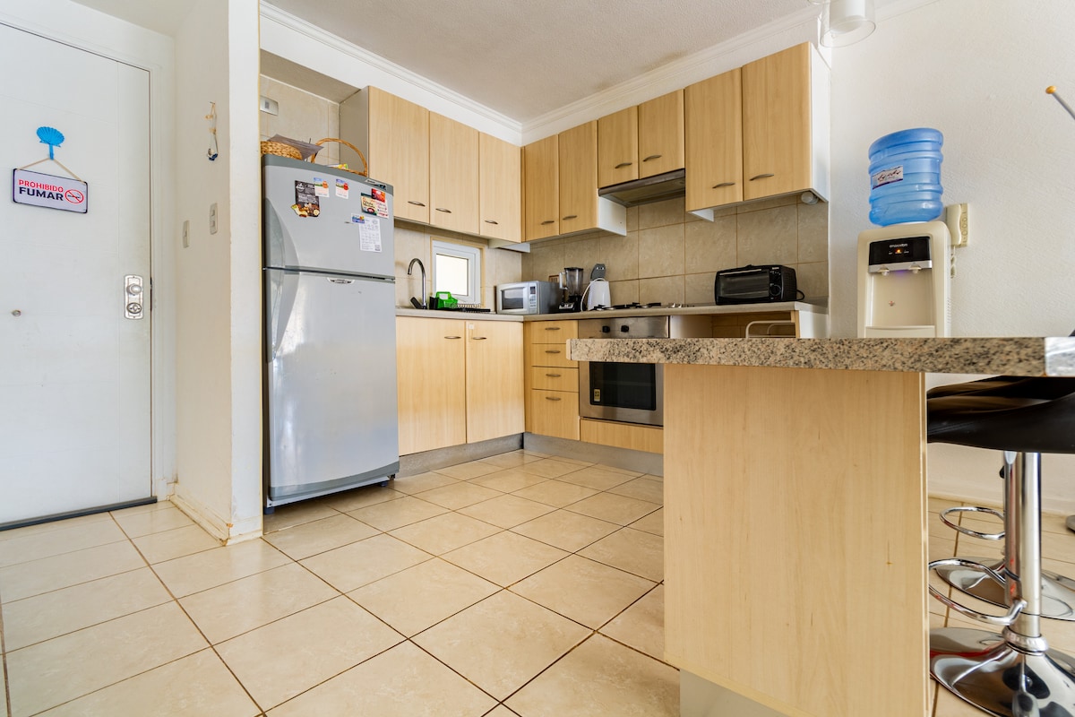 Appartement confortable, entièrement équipé pour 6 personnes, avec chauffage, télévision HD dans le salon et la chambre principale ; comprend le WIFI par fibre optique Movistar. Le complexe dispose d'une sécurité 24h/24. Comprend un parking privé souterrain. Piscine en été et lagon pour les activités nautiques toute l'année. Nous avons un kayak disponible pour les clients inclus dans le prix. Le complexe dispose d'une salle de sport et d'un jacuzzi (non inclus dans le séjour).