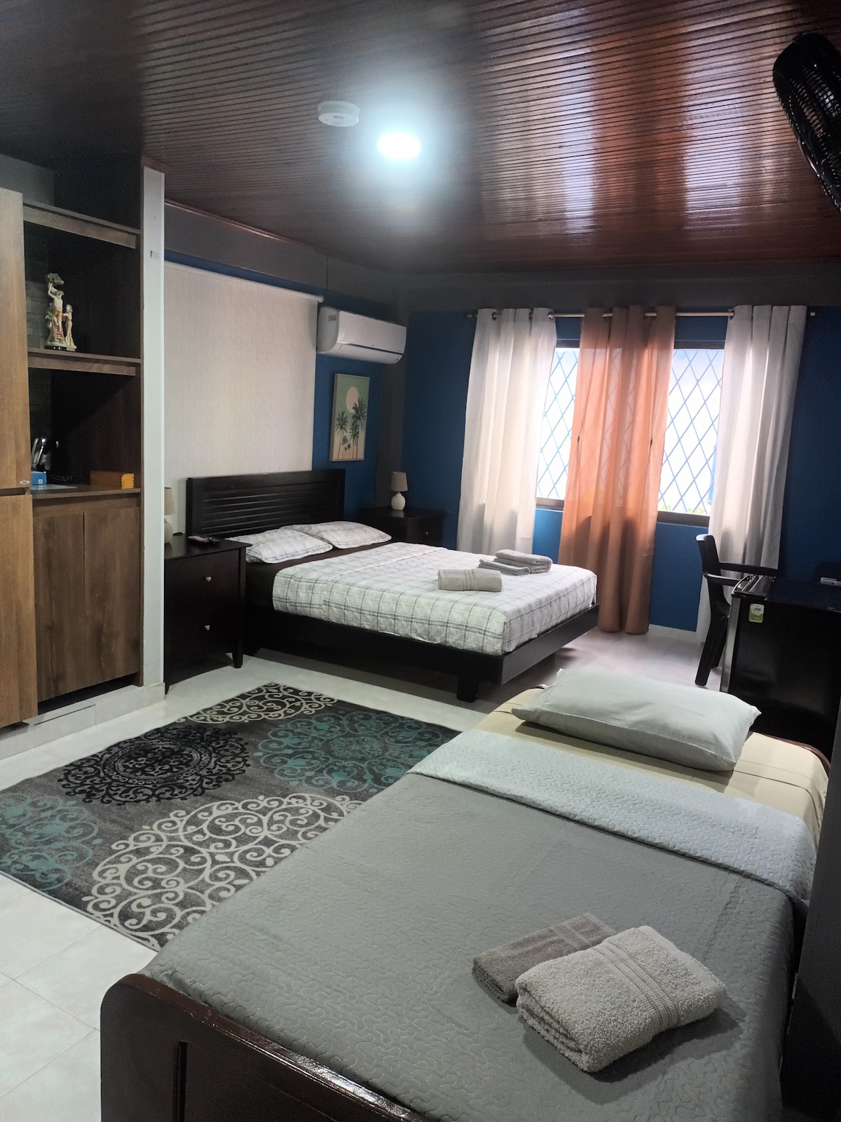 Une maison familiale de deux étages sur l'île de San Andrés, pouvant accueillir 14 personnes. Cinq chambres confortables avec salle de bain privative (deux des chambres à l'étage partagent une salle de bain). Une cuisine entièrement équipée, et un salon et une salle à manger pour profiter au mieux de votre temps en famille ou entre amis. Climatisation centrale (climatisation mini-split dans les chambres et les pièces), salle familiale, télévision par câble, eau potable, chauffage, lave-linge et sèche-linge.