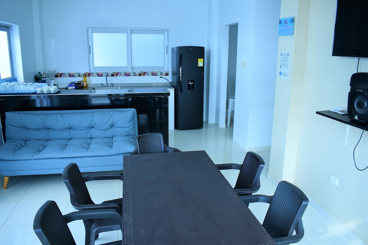 Capacité jusqu'à 7 personnes – « SANS FRAIS SUPPLÉMENTAIRES » 🌿 Environnement calme et naturel à San Antero 🏖️ À quelques minutes de la plage 🍽️ Cuisine toute équipée 🐾 Animaux admis 📶 Wi-Fi et espace de travail 🎲 Jeux de société et espace de repos, dispose d'une terrasse 🧑🤝🧑 Propriétaire disponible dans l'appartement adjacent pour une plus grande efficacité du service 🏡 BBQ 🛒 Supermarché à proximité pour plus de confort. Coveñas et San Antero à 10 minutes en voiture, musée de la base navale à 5 minutes
