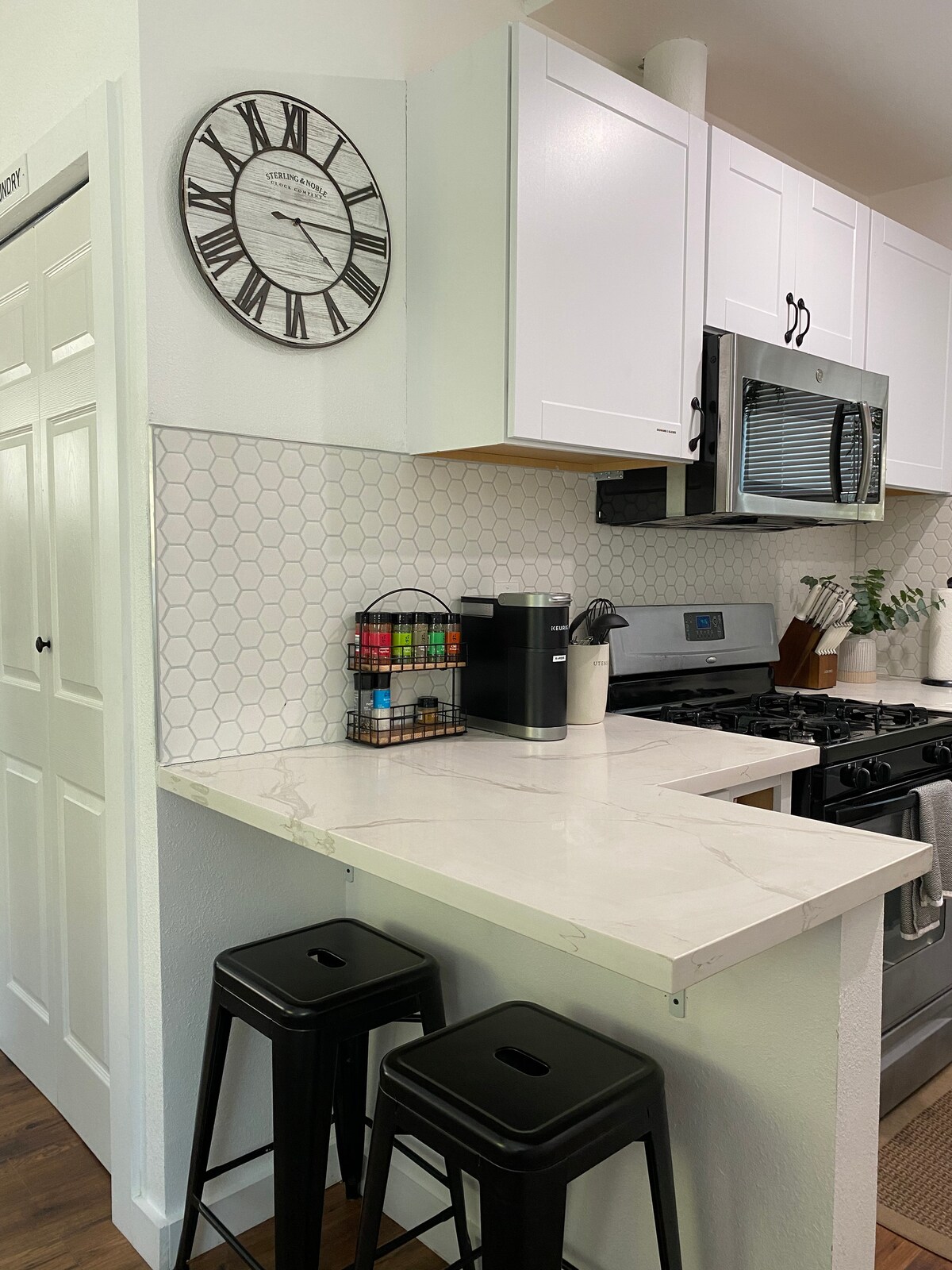 DISCOUNT LONG TERM STAYS! This chic farmhouse style studio is fully renovated and professionally designed. Our home can comfortably fit up to 4 people. The home includes pull down blackout shades throughout, queen sized memory foam bed, A/C & heating unit, printer, fast Wi-Fi, Cable TV, 65 inch Smart TV, fully stocked kitchen with all cookware and basic spices, plush linens, shampoo/conditioner/body wash, spacious bathroom with large walk-in shower, and laundry basket with in-unit washer/dryer.