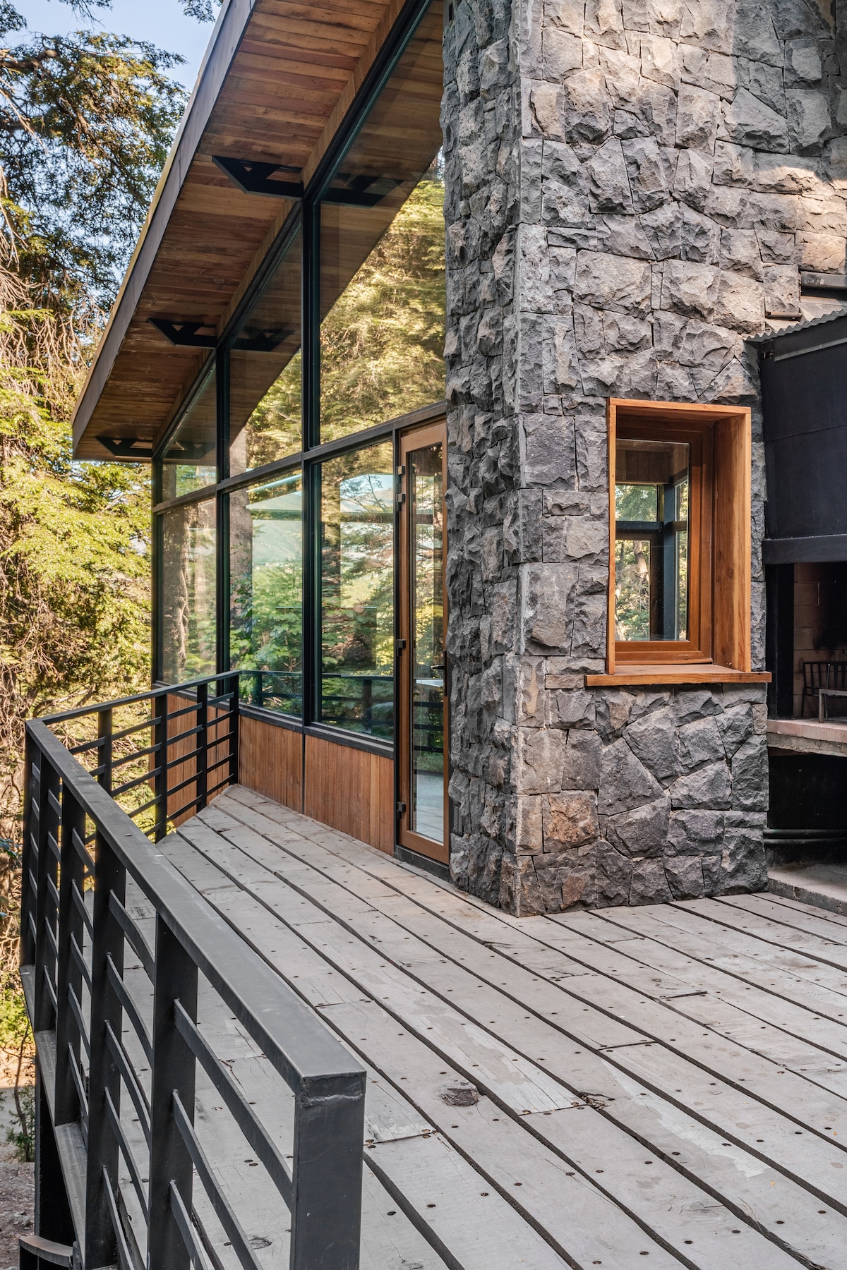 Cabane conçue par un architecte entourée de forêt indigène, avec vue imprenable sur le lac et les montagnes. Le verre du sol au plafond brouille la ligne entre l'intérieur et la nature. Réveillez-vous dans la cime des arbres, respirez l'air de la forêt depuis la terrasse spacieuse et détendez-vous dans un silence intemporel. À quelques minutes de Cerro Catedral et niché dans Arelauquen Golf & Country, c'est une retraite paisible et design pour les familles, les couples et les rêveurs.