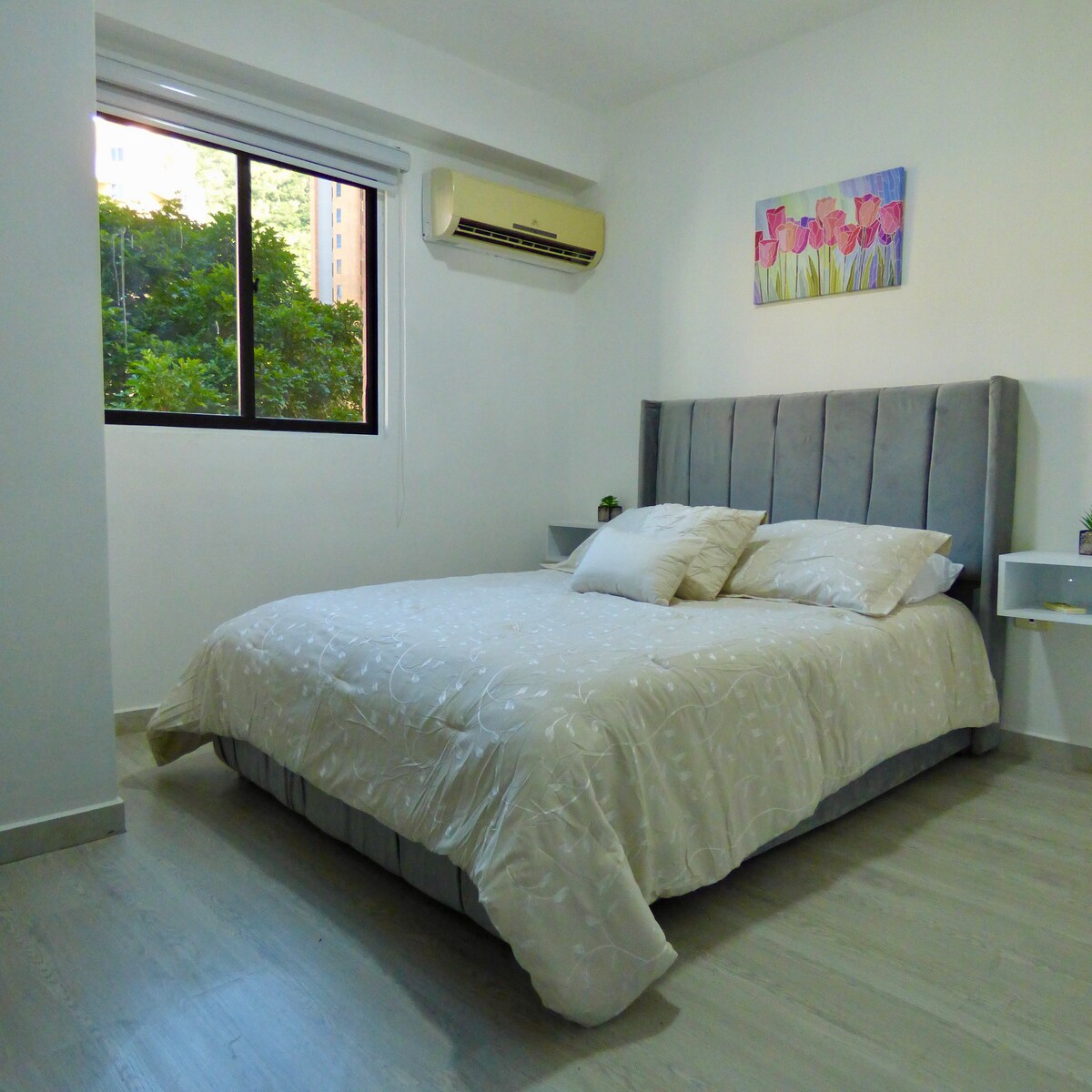 Appartement luxueux et confortable dans le meilleur quartier de la ville, avec tout ce dont vous avez besoin et que vous attendez pour un séjour confortable et agréable. - Parking gratuit, surveillance et sécurité 24 h/24. - 100 % eau et centrale électrique avec énergie de secours dans toutes les zones. - Centres commerciaux à proximité, pharmacies, restaurants, parcs et cliniques. - Opérateur de télévision par câble (SIMPLE TV) - Site exclusif pour le trajet à distance. - Internet par satellite. - Lit Queen Size et un canapé-lit.