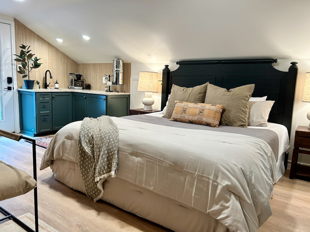 À l'origine, c'était une grange de cordonnier en activité dans les années 1930, puis entièrement rénovée et convertie en 2021. Maintenant, l'espace est moderne mais conserve toujours le caractère et le charme d'origine. Comprend la climatisation, un lit Queen Size très confortable, une cuisine entièrement fonctionnelle avec cuisinière, micro-ondes, petit four et un mini-réfrigérateur. Salle de bains avec de belles et grandes lumières de coiffeuse et douche bien éclairée. Si vous séjournez plus de 30 jours, nous offrons un service de blanchisserie gratuit.