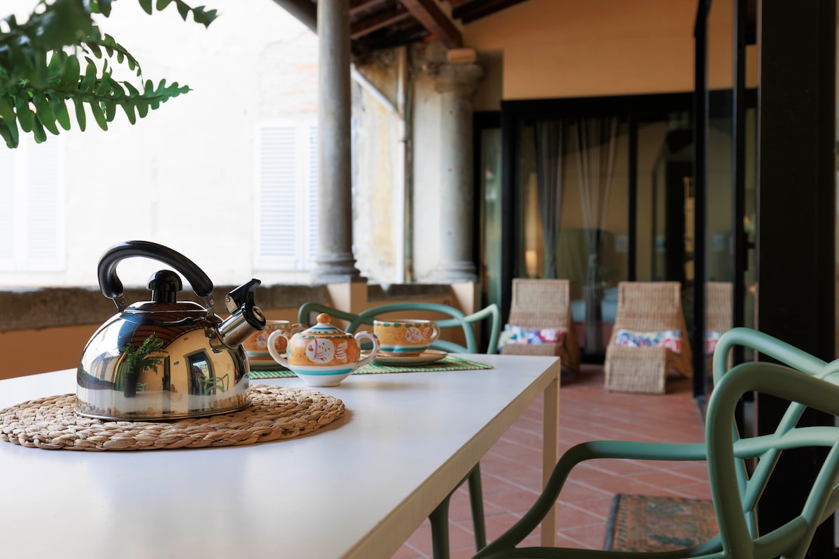 L'âme véritablement florentine de cet appartement exquis et de sa terrasse panoramique ouvre la voie à un séjour inoubliable. Depuis ce point de vue privilégié au-dessus des toits, vous pouvez presque toucher les monuments de Florence en sirotant un apéritif au coucher du soleil, ou saluer le matin sous la pergola avec un petit déjeuner tranquille pendant que la ville se réveille dans une lumière dorée.