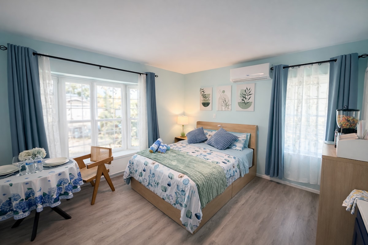 Il s'agit d'une salle d'art entièrement fonctionnelle avec des sorties indépendantes, conçue par l'artiste Sam Jia. Bien que la chambre ne soit pas grande, la peinture murale exquise et le design à la mode rendent toute la pièce chaleureuse et confortable. Elle dispose d'une cuisine ouverte, d'un lit Queen size, d'un matelas en coton à mémoire de forme, d'une salle de bain indépendante, d'un vestiaire et d'un débarras. Les restaurants italiens, Dollar Tree, Starbucks et KFC sont tous accessibles à pied.