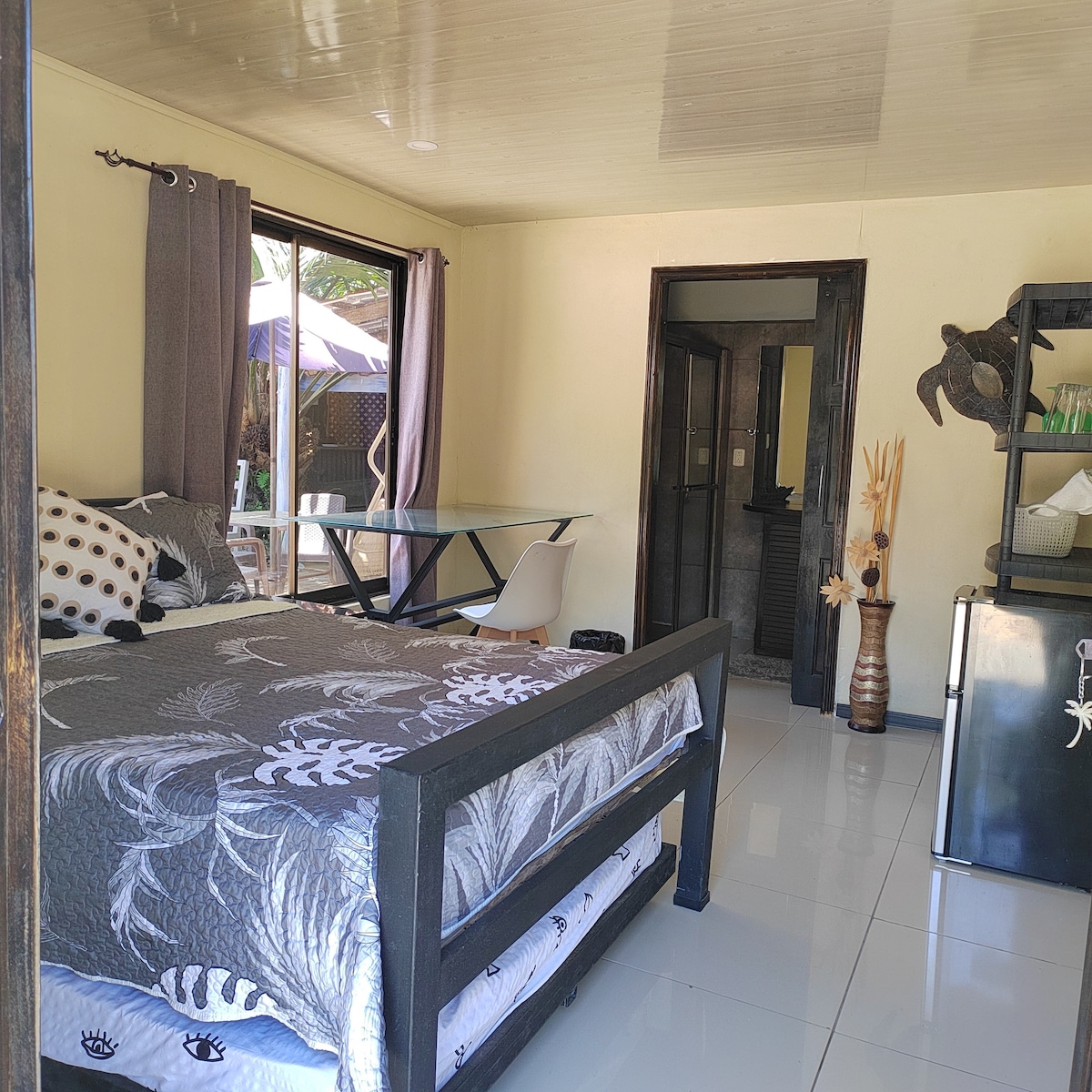 Connectez-vous avec la nature d'Uvita de Osa dans ce studio privé confortable à côté de la forêt avec vue sur la mer où les levers et couchers de soleil embrassent cet endroit calme. Situé à proximité des plages, des rivières, des cascades, des restaurants et de toutes les commodités. Disponible pour deux personnes, lit Queen, salle de bain privée, douche avec eau chaude, climatisation, un petit réfrigérateur, cafetière, TV et WIFI. Le parking est spacieux, sécurisé et avec un accès privé avec une porte à télécommande.