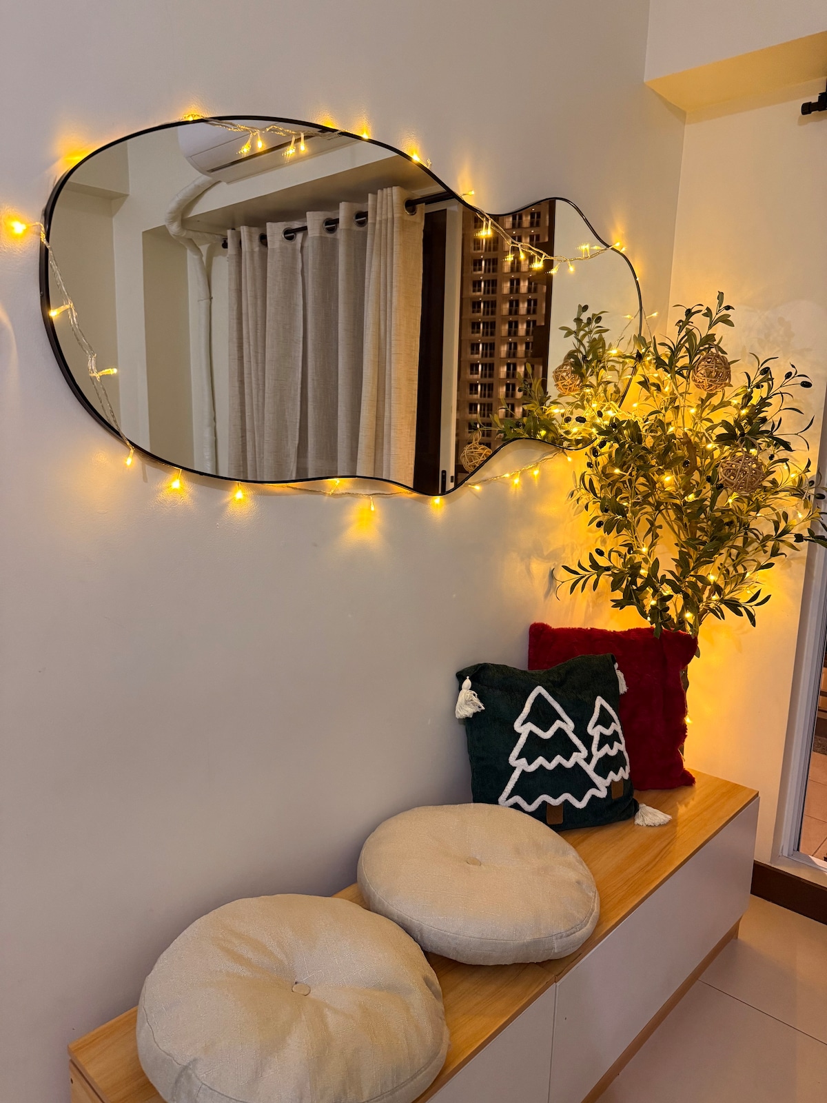Une unité de condo de type studio située sur Pasig Boulevard. Lumiere Residences est un développement tropical moderne de grande hauteur à 10-15 minutes de Megamall Shangrila et Capitol commons. À environ 15-20 minutes de Makati et BGC. Vous pourrez vous reposer car l'endroit est relaxant, confortable et frais. L'endroit est neuf et bien entretenu. La vue depuis le balcon est le point fort de ce petit appartement. Café ? Thé ? Vin ? ou Bière ? La vue sur les lumières de la ville est incroyable, que ce soit sur la terrasse panoramique de l'immeuble ou sur notre propre balcon.