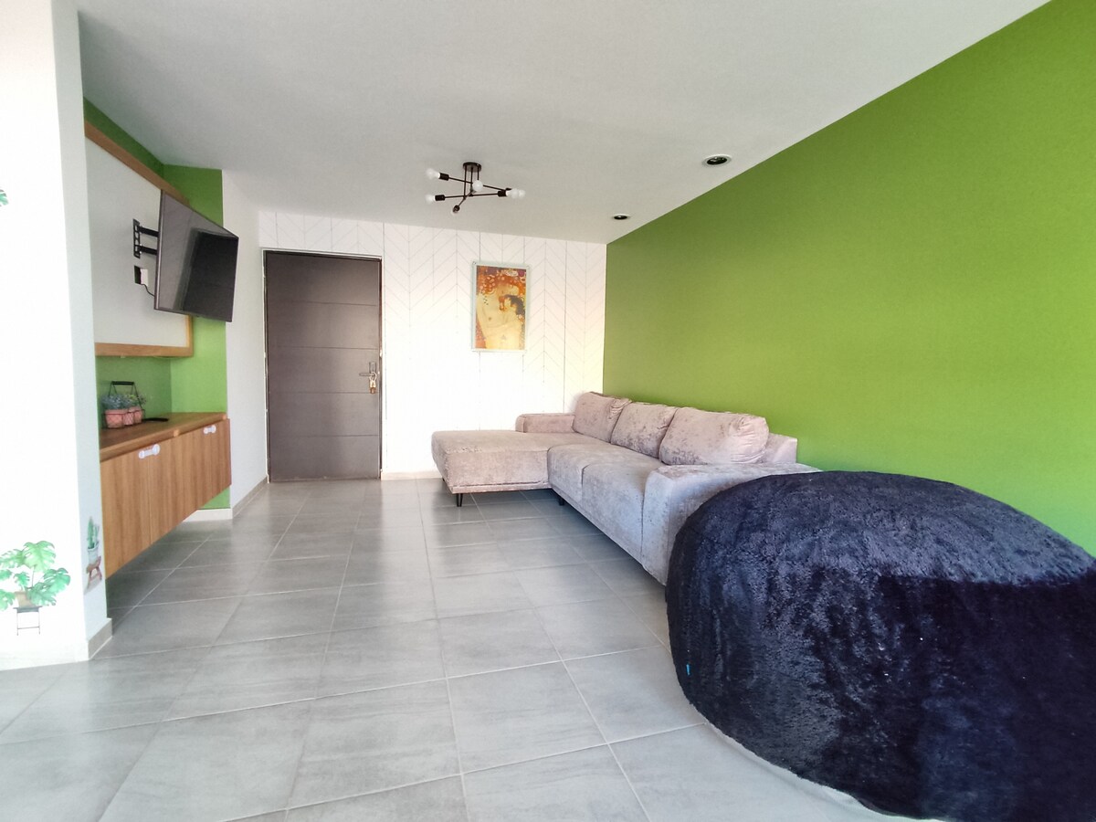Hermoso Departamento con amplia terraza, limpio y muy acogedor. la construcción es nueva, así como los muebles que hay en su interior. el departamento es de concepto abierto, solo hay un biombo que separa el área del dormitorio con la sala, para dar un poco de privacidad. Hay un sofá cama, tamaño matrimonial, en la sala El departamento tiene amplias ventanas que brindan una excelente iluminación. y cuenta con una linda terraza, rodeada de plantas.