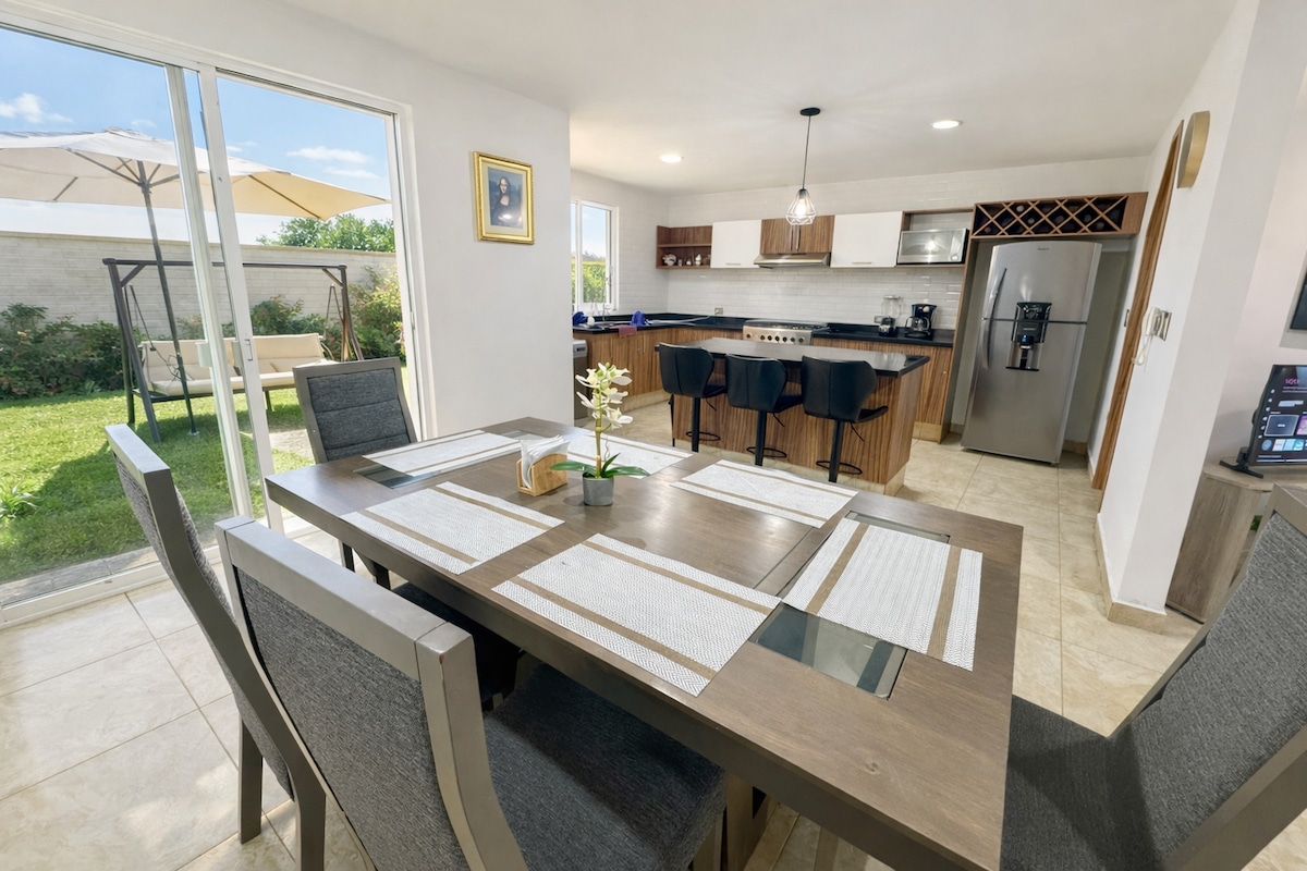 Profitez d'un séjour incroyable dans cette maison lumineuse, fraîche et super confortable. Il dispose d'un joli jardin pour se détendre ou pour vos animaux de compagnie, d'une connexion Wi-Fi rapide pour le travail et d'une cuisine entièrement équipée pour que vous puissiez cuisiner facilement. Situé à quelques pas du centre commercial Explanada et à proximité du Periférico, se déplacer est super facile. Nos précédents voyageurs le recommandent vivement.