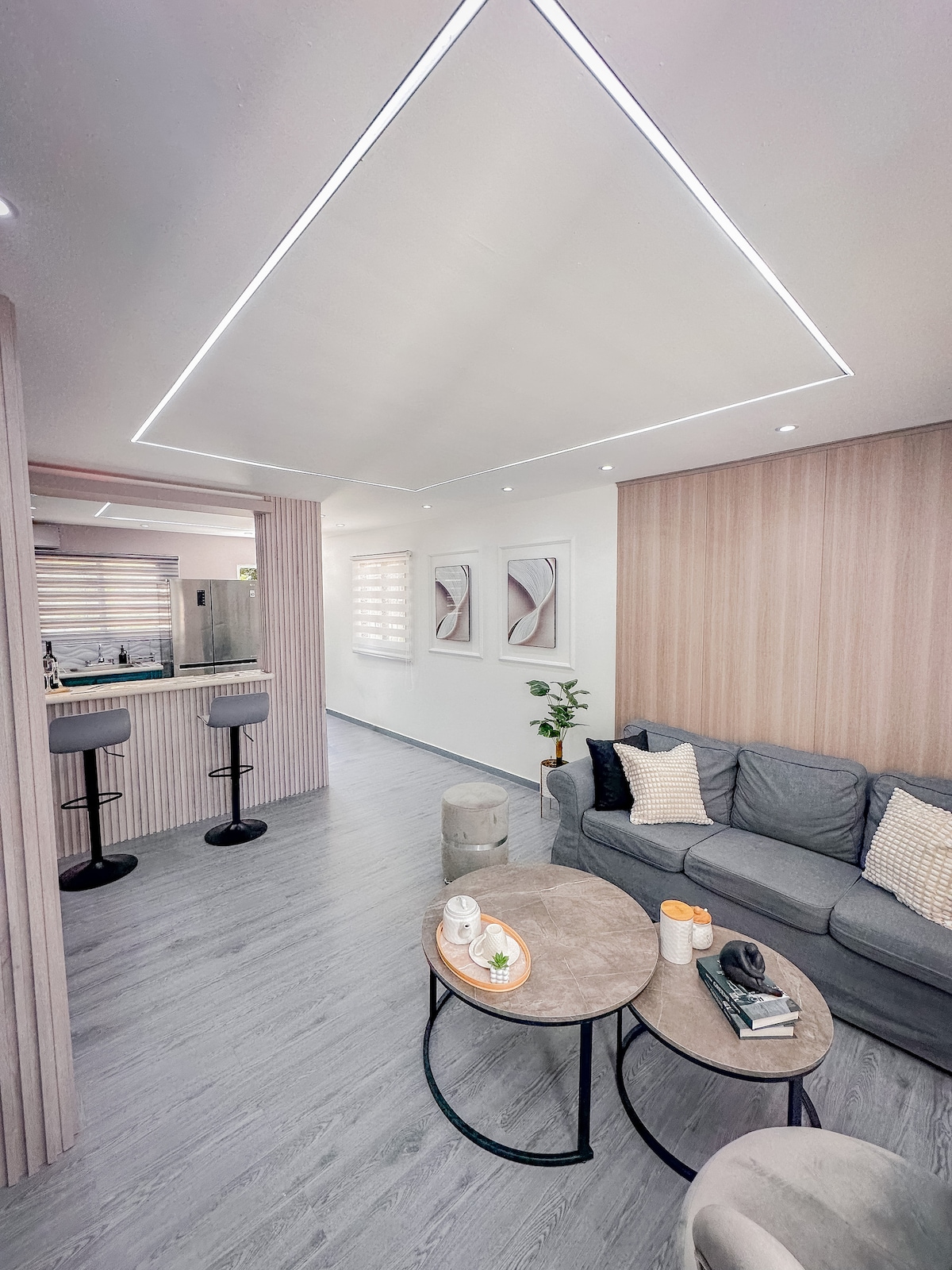 Profitez d'une expérience élégante dans cette oasis centrale. L'appartement dispose d'une connexion Wi-Fi, d'une télévision connectée, de la climatisation, d'un chauffe-eau automatisé, d'une cuisine moderne équipée d'une cuisinière/four, d'un réfrigérateur, d'un mixeur, d'une cafetière électrique, d'un refroidisseur d'eau (idéal pour les journées chaudes) et de tous les ustensiles nécessaires. L'appartement est équipé d'un onduleur de puissance pour l'électricité 24h/24. Toutes les chambres (Master dispose également de la climatisation) ont des ventilateurs de plafond avec des haut-parleurs Bluetooth intégrés. Machine de karaoké pour chanter les cœurs avec votre famille.