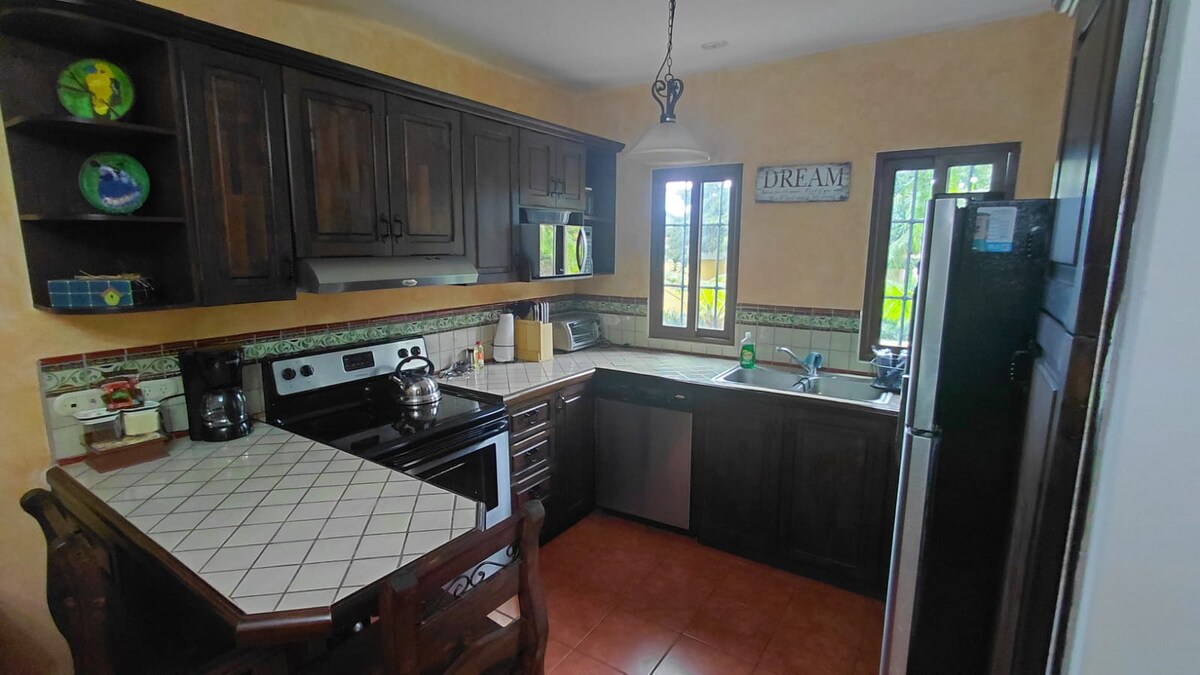Détendez-vous et profitez de cette belle expérience dans une maison entièrement rénovée dans la copropriété Portal de Antigua, qui dispose d'une cuisine équipée, d'un filtre à eau artisanal, d'un salon confortable, de quatre chambres avec 4 salles de bains, d'un barbecue, d'une terrasse avec firepit, de deux cheminées et entièrement équipée. - À 10 minutes du parc central d'Antigua, Guatemala. - À 2 minutes de la place commerciale avec des supermarchés et d'autres commodités. - Sécurité privée 24/7 dans la copropriété.