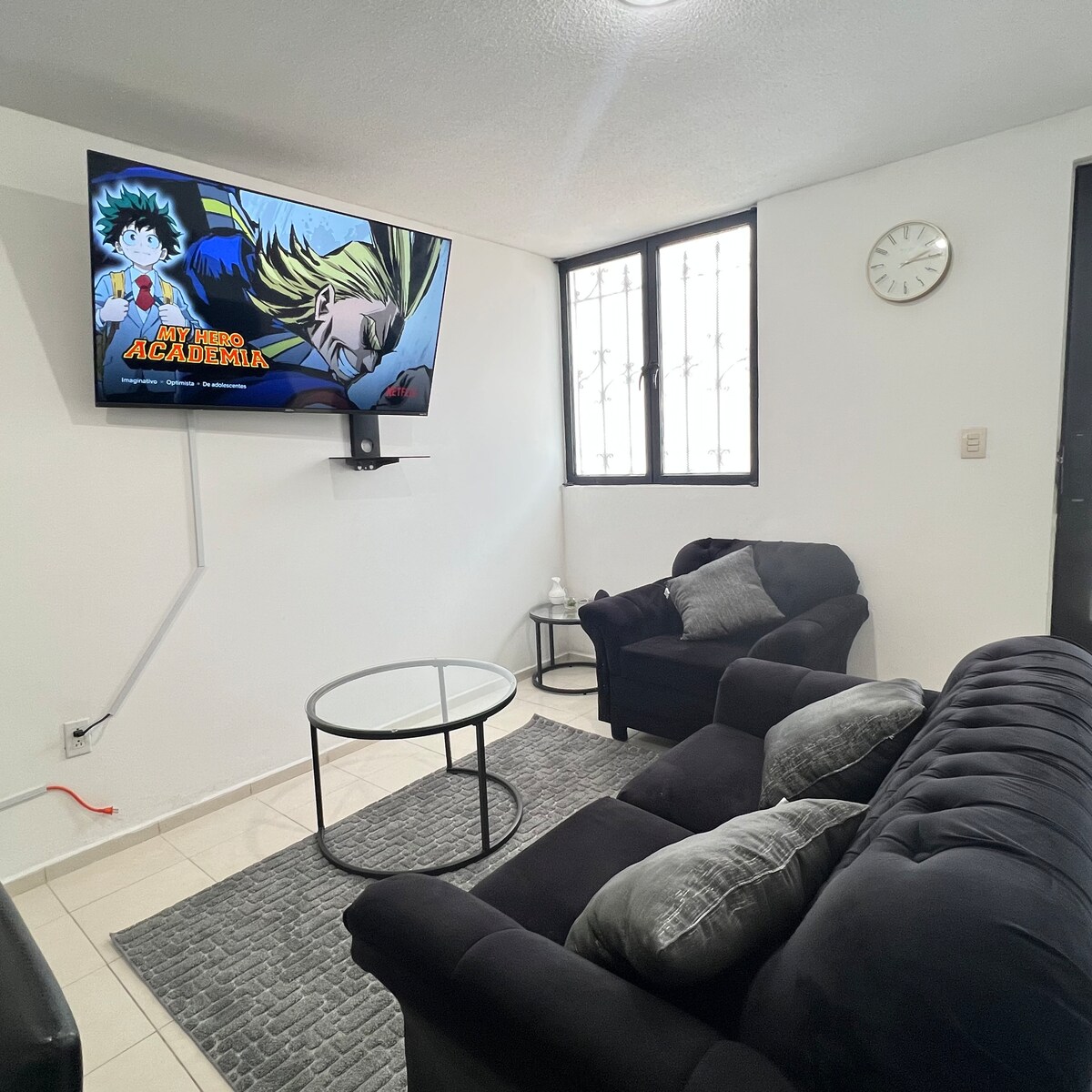 Petit appartement à quelques pas du Paseo Hidalgo, confortable, calme et central à un pâté de maisons de la belle cathédrale de notre ville de Tehuacán. Idéal pour ceux qui recherchent un hébergement central. Sécurité, confort, propreté et tranquillité. Avec tous les services. Appartement au premier étage. NOUS N'AVONS PAS DE PARKING. Heure maximale de check-in 21 h 00.