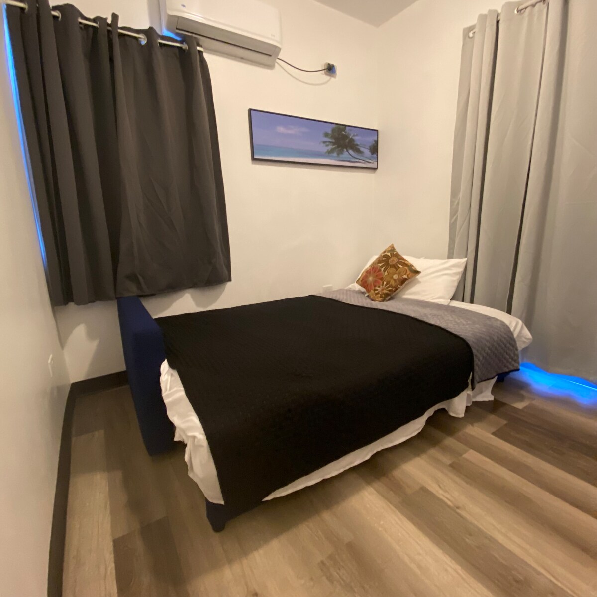 This apartment is fully furnished with a queen bed and a Kitchen with the basic items you need to Cook a meal; although there are many restaurants within a 10 minute radius. What makes this place unique is how it allows you to see the most amazing sunrises and sunsets 3 min away walking distance from a spectacular beach called La Pared.