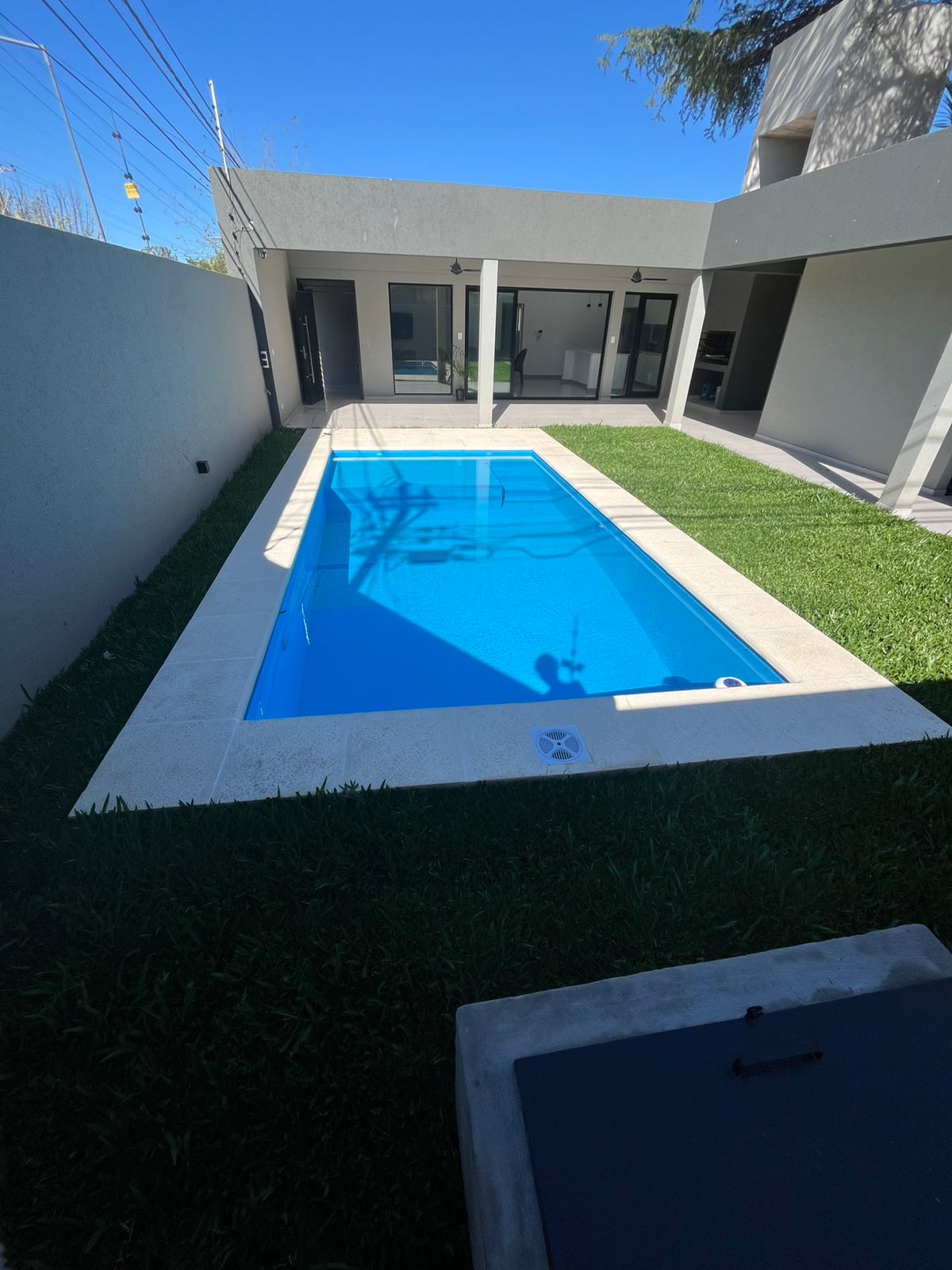 Ubicada en barrio cerrado - Estancia La Rinconada. Casa cómoda, amplia y luminosa. Pileta privada. Parrillero y galería cubierta. Cochera cubierta para dos vehículos. Wifi. Cocina equipada. Todas las habitaciones cuentan con aire frio-calor y ventilador. 3 dormitorios. Uno en planta baja con baño en suite. Ideal para descansar, para grupos de golf y/o familias. Seguridad las 24 horas. Alarma particular. A 10 minutos de Rosario. No se permite fiestas.