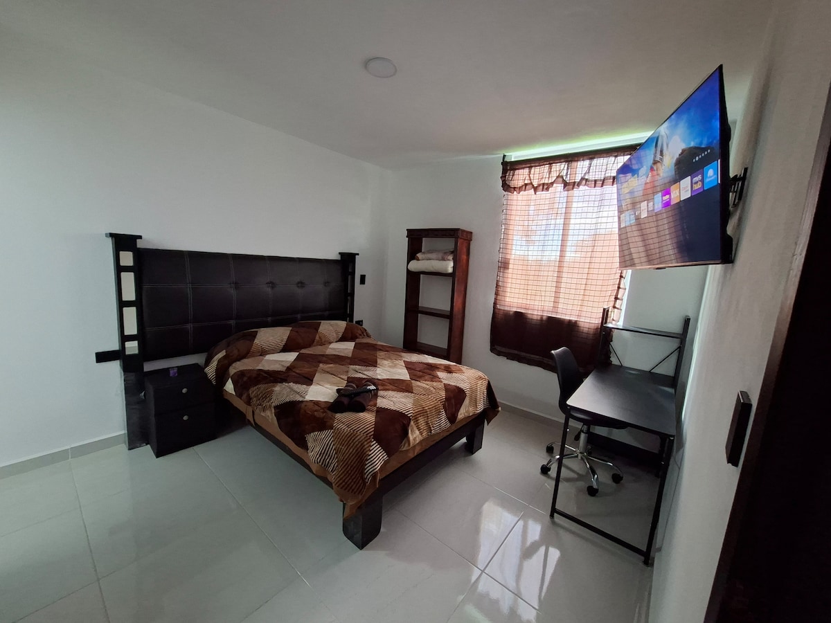 Espace lumineux et moderne situé au 18e étage avec vue dégagée sur la ville. Idéal pour les couples, les amis et les séjours plus longs et détendus. 3 lits Queen Size pour 6 personnes Cuisine équipée Machine à laver séchante de grande capacité. Stores électriques et Wi-Fi haut débit pour le bureau à domicile. Profitez d'une SALLE DE SPORT 24h/24 et 7j/7, d'un toit-terrasse et d'un parking dans l'immeuble pour 2 voitures. Bâtiment adapté aux animaux de compagnie avec service de sécurité et caméras de surveillance 24h/24 et 7j/7. Accès rapide à Cholula (à 5 minutes), à Angelópolis (à 8 minutes) et aux principales attractions