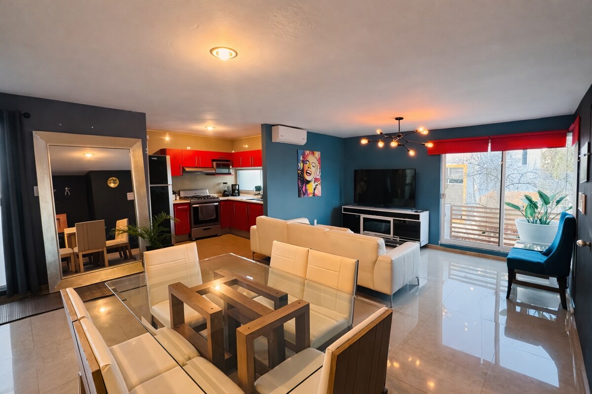 ⭐ Bienvenue dans votre séjour idéal à Virreyes, SLP Profitez d'un appartement spacieux, confortable et équipé, idéal pour les familles, les groupes et les voyageurs à la recherche de repos et d'un bon emplacement. 🏡 Situé à Colonia Virreyes, San Luis Potosí, au deuxième étage (sans ascenseur) dans un bâtiment privé.